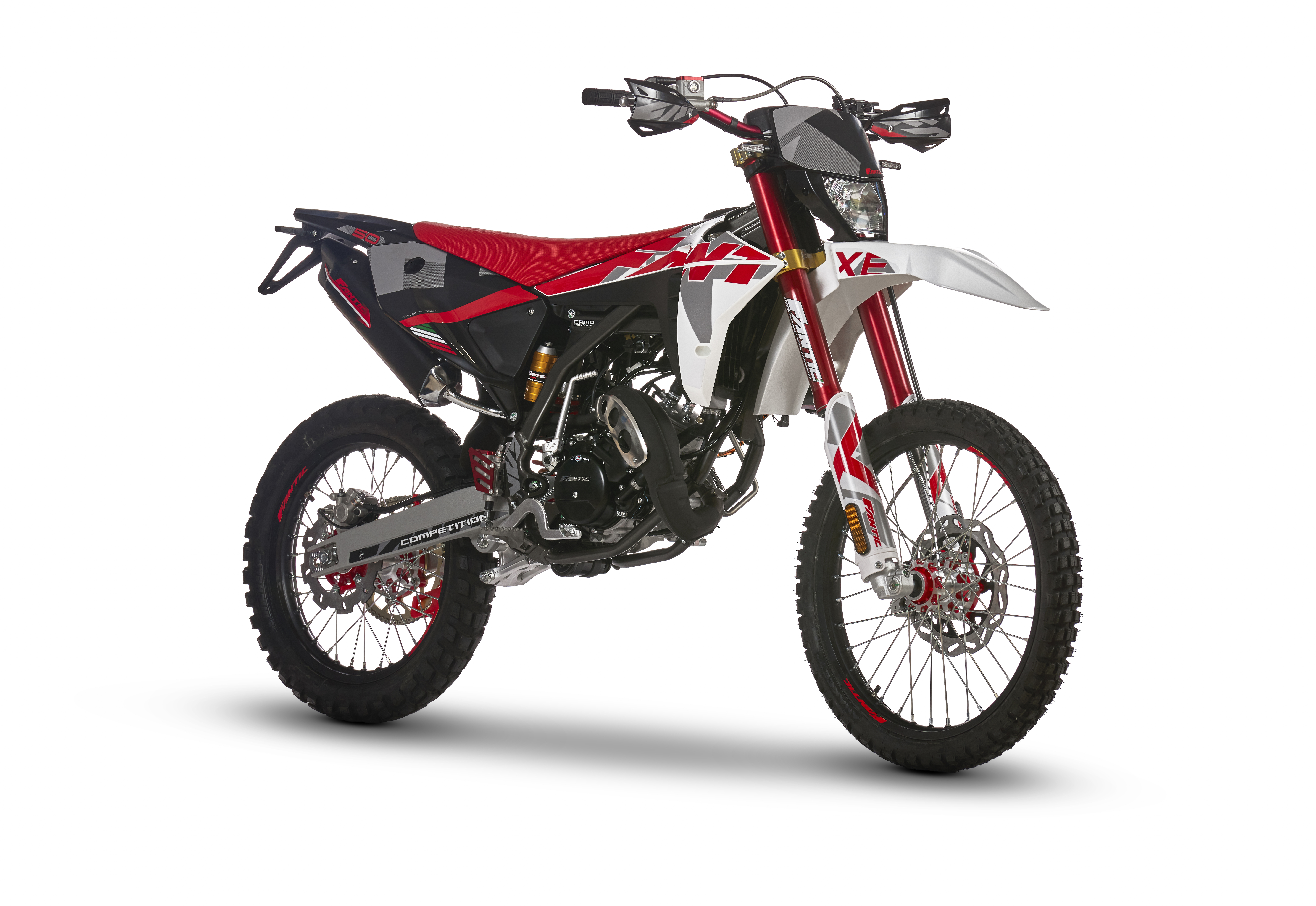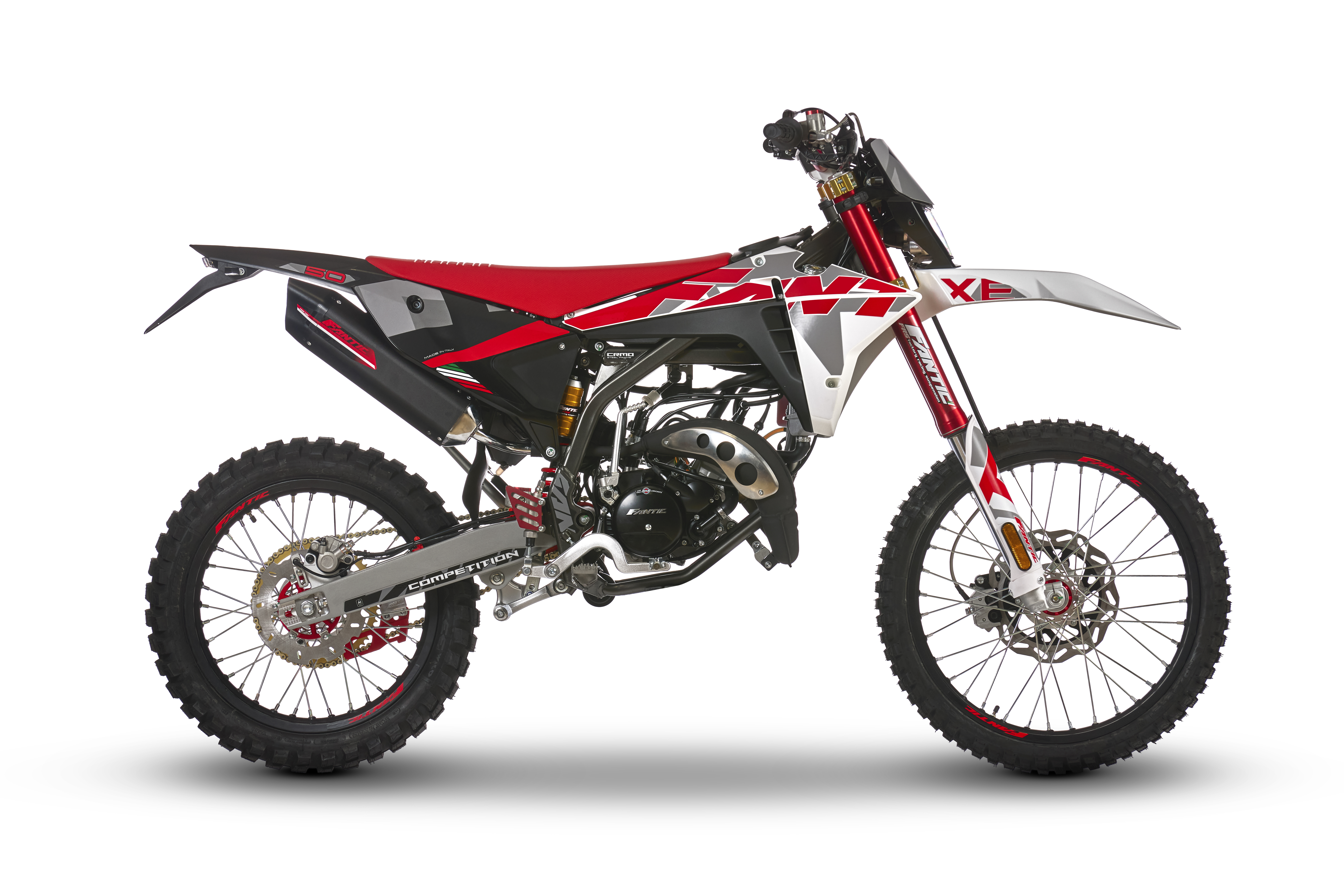 XE 50 Competition enduro to motorower dla tych, którzy chcą technicznych pojazdów terenowych, z komponentami podobnymi do modeli wyścigowych. Zestaw „Competition” obejmuje widelec Fantic FRS Red o średnicy 41 mm, tylne zawieszenie FSR z systemem piggy back(napięcie wstępne sprężyny i hydrauliczną regulację odbicia), aluminiowy wahacz, anodowaną osłonę pompy hamulcowej tylnego hamulca, płytki CNC, wyścigowy układ hamulcowy z regulowanym zasięgiem, kolor czarny anodowany tłumik, osłony dłoni, lżejsza zębatka z ergalu.