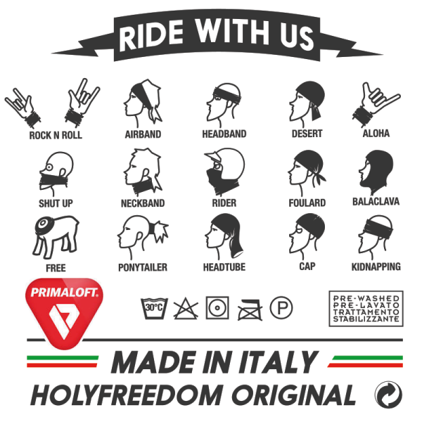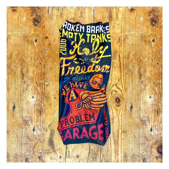 Wielofunkcyjna, oldschool'owa, bezszwowa, oddychająca, elastyczna - jedyna w swoim rodzaju -chusta/komin. Idealna zarówno dla motocyklistek i motocyklistów. Świetnie nadaje się na prezent dla fana dwóch kółek. Chroni przed zimnem, wiatrem, ochrania szyję przed owadami. Stanowi idealne uzupełnienie ubioru motocyklowego.