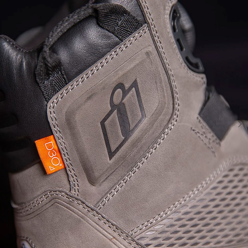 Icon Stormhawk grey wodoodporne szare turystyczne buty motocyklowe bez sznurowania zapięcie BOA