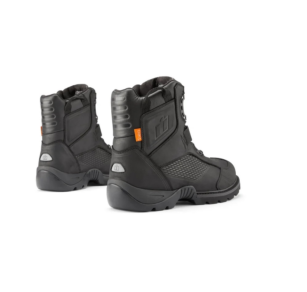 Z naszych deszczowych przejażdżek po Portland w stanie Oregon pochodzą wodoodporne buty ICON Stormhawk™. Wysokiej jakości skórzana cholewka z wodoodpornym wykończeniem w połączeniu z wodoodporną/oddychającą wkładką eVent zapewnia najwyższy komfort i funkcjonalność przez cały rok. Podeszwa zewnętrzna z bieżnikiem o wysokiej przyczepności zapewnia certyfikowaną wydajność motocyklową. System dopasowania BOA® zapewnia mikroregulację i precyzyjne dopasowanie, zaprojektowane z myślą o najtrudniejszych warunkach.