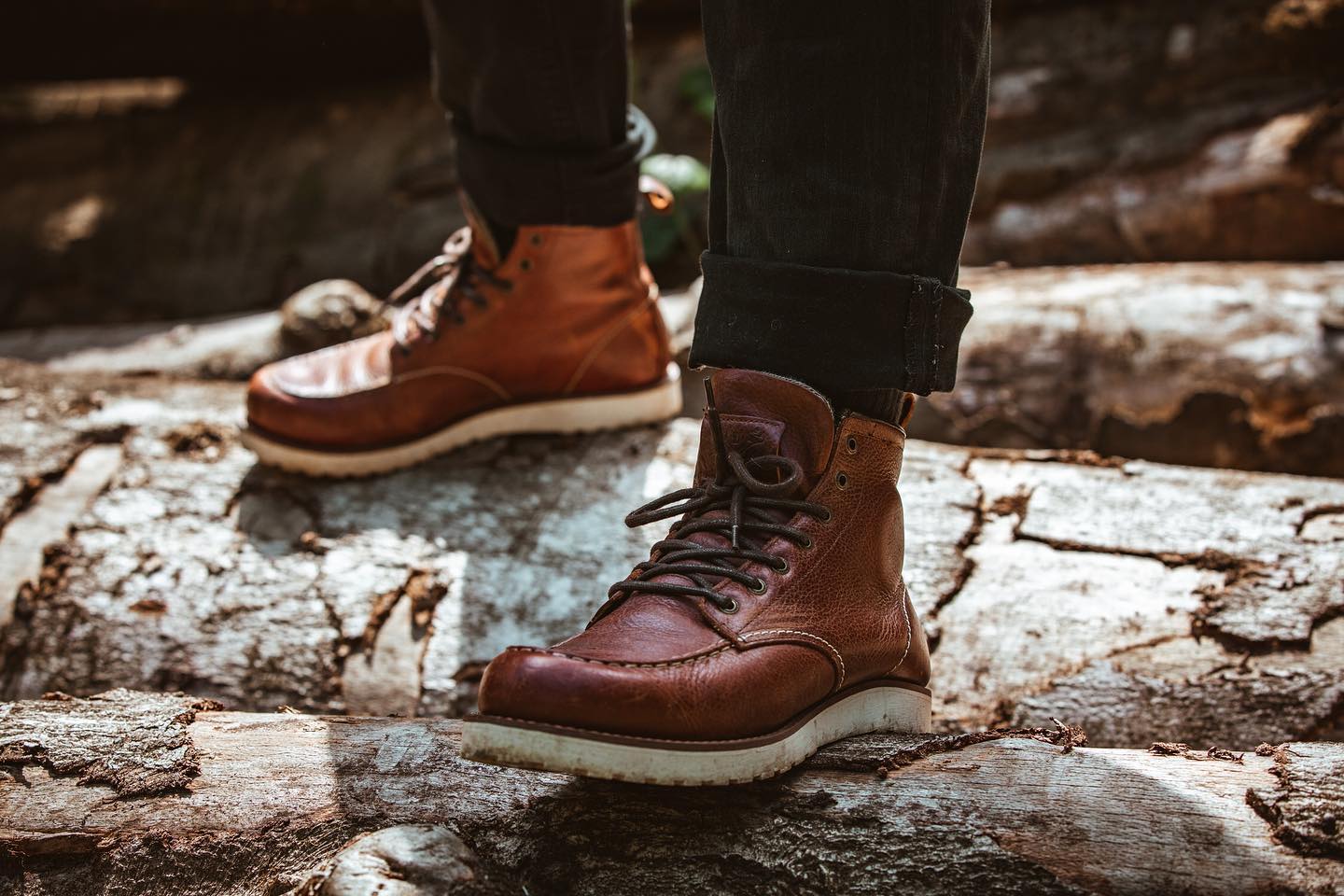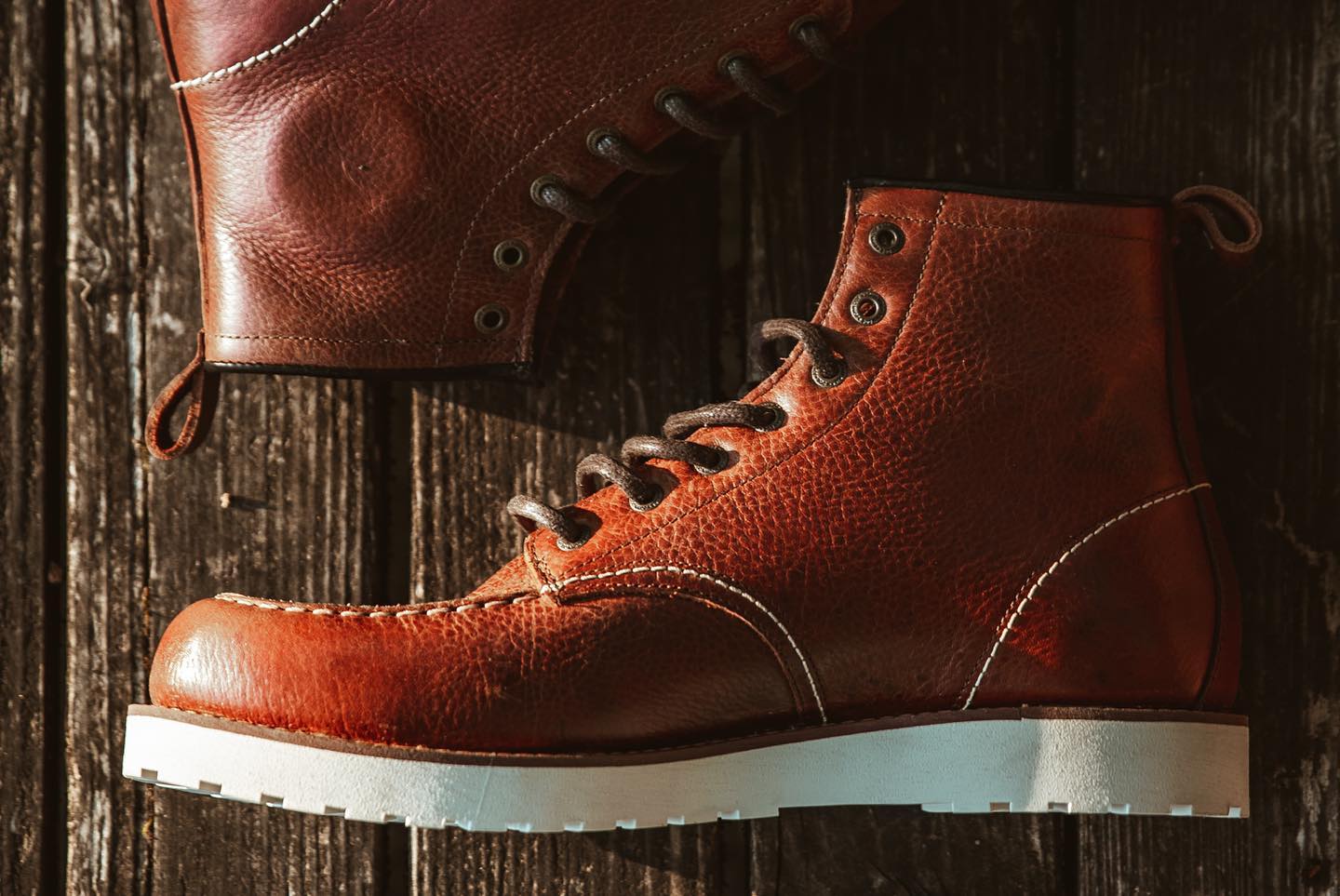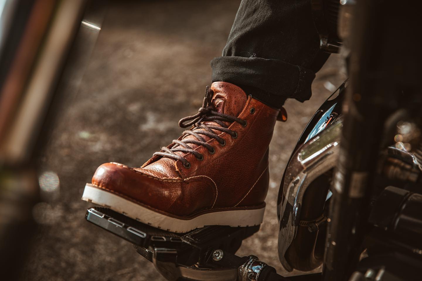 John Doe Rambler cognac buty motocyklowe trapery brązowe z biała podeszwą