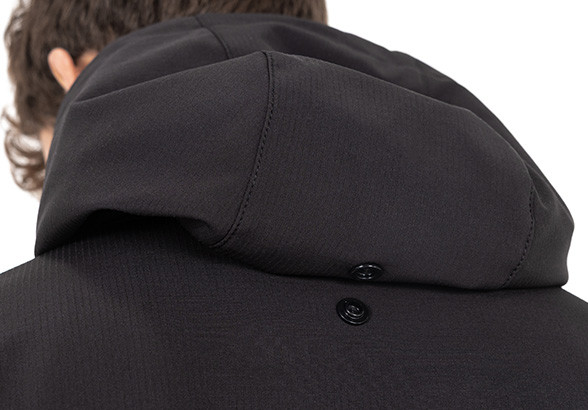 - Kaptur: zapięcie na guziki u góry, aby zapobiec łopotaniu na wietrze