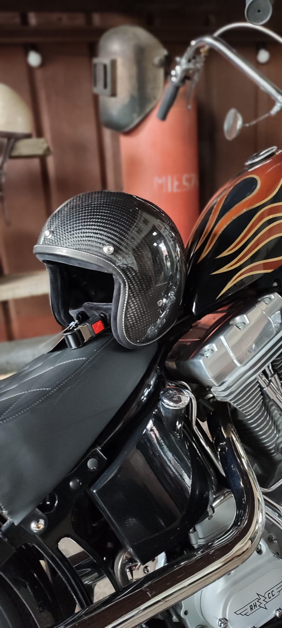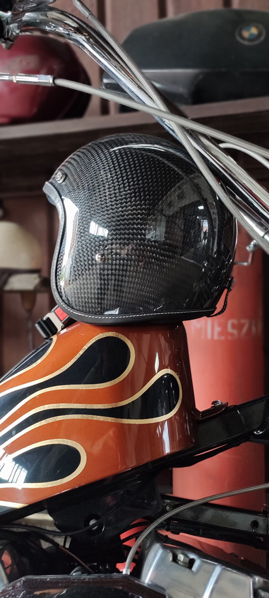 KASK BANDIT CARBON ZE SKÓRZANĄ OBRAMÓWKĄ KASK OTWARTY Z MAŁĄ SKORUPĄ CAFE RACER HARLEY BOBBER CHOPPER HELMETS