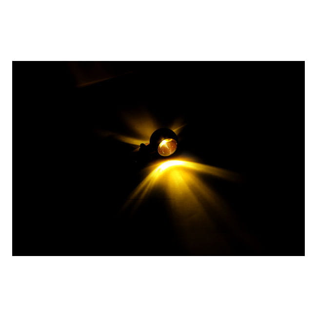 Klasyka przekonuje szlachetnym wyglądem. Mini Bulls Eye do montażu na końcu kierownicy. Kulista przyciemniana soczewka w metalowej obudowie. W zestawie znajdują się gumowe adaptery umożliwiające zamontowanie kierunkowskazów na kierownicy calowej (1 cal) oraz o średnicy 22mm (7/8 cala). Kierunkowskazy montowane w kierownicę systemem rozporowym, przewody zasilające montowane powinny być w kierownicę.