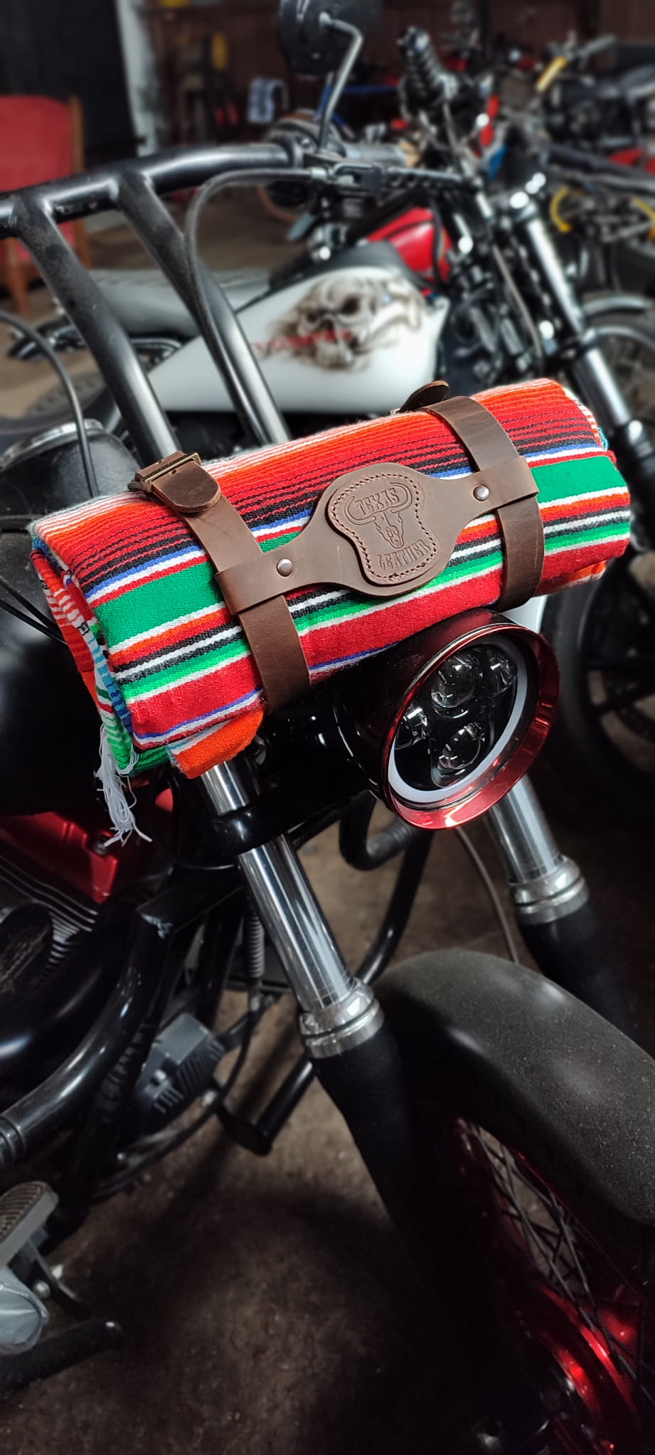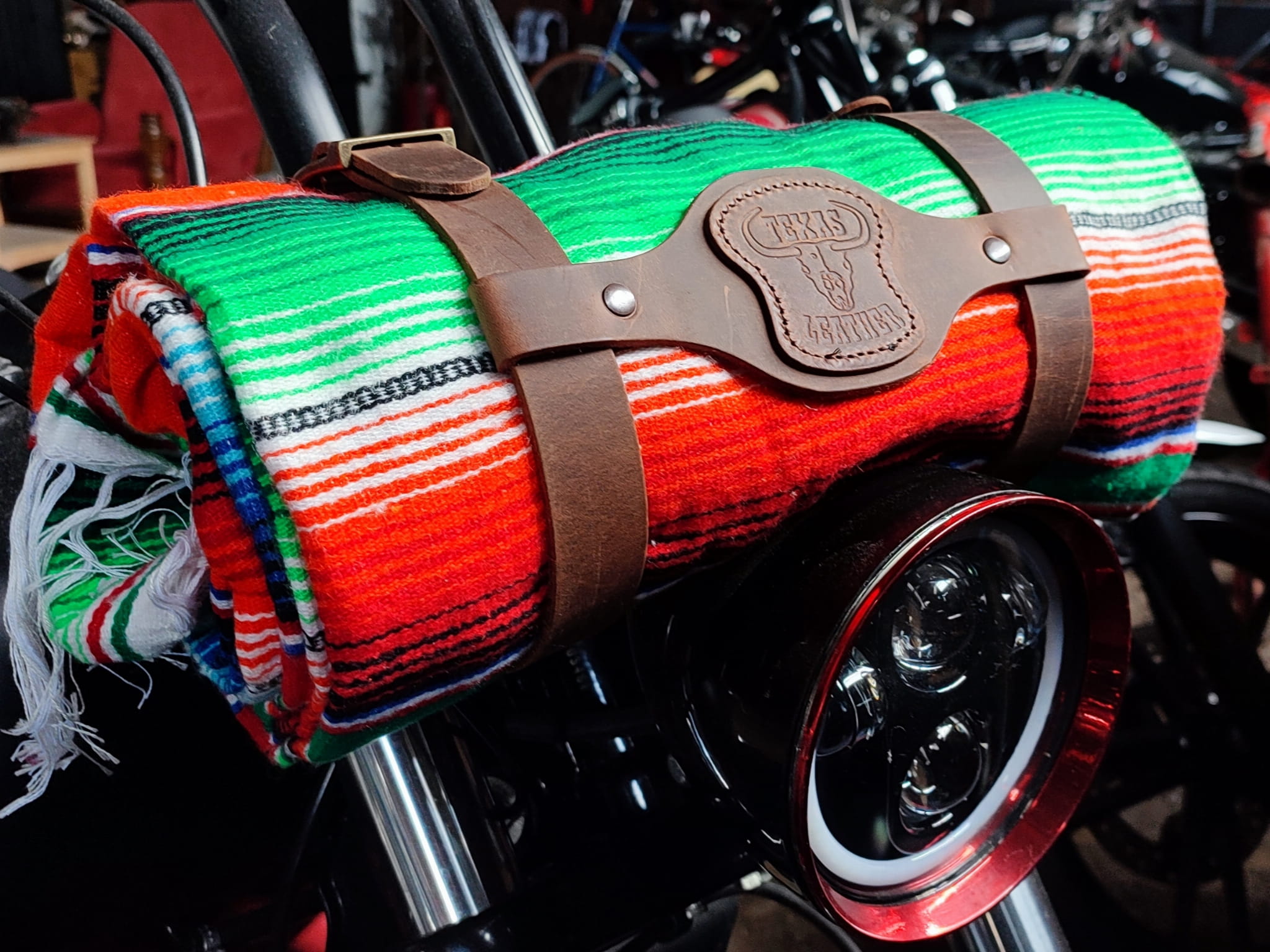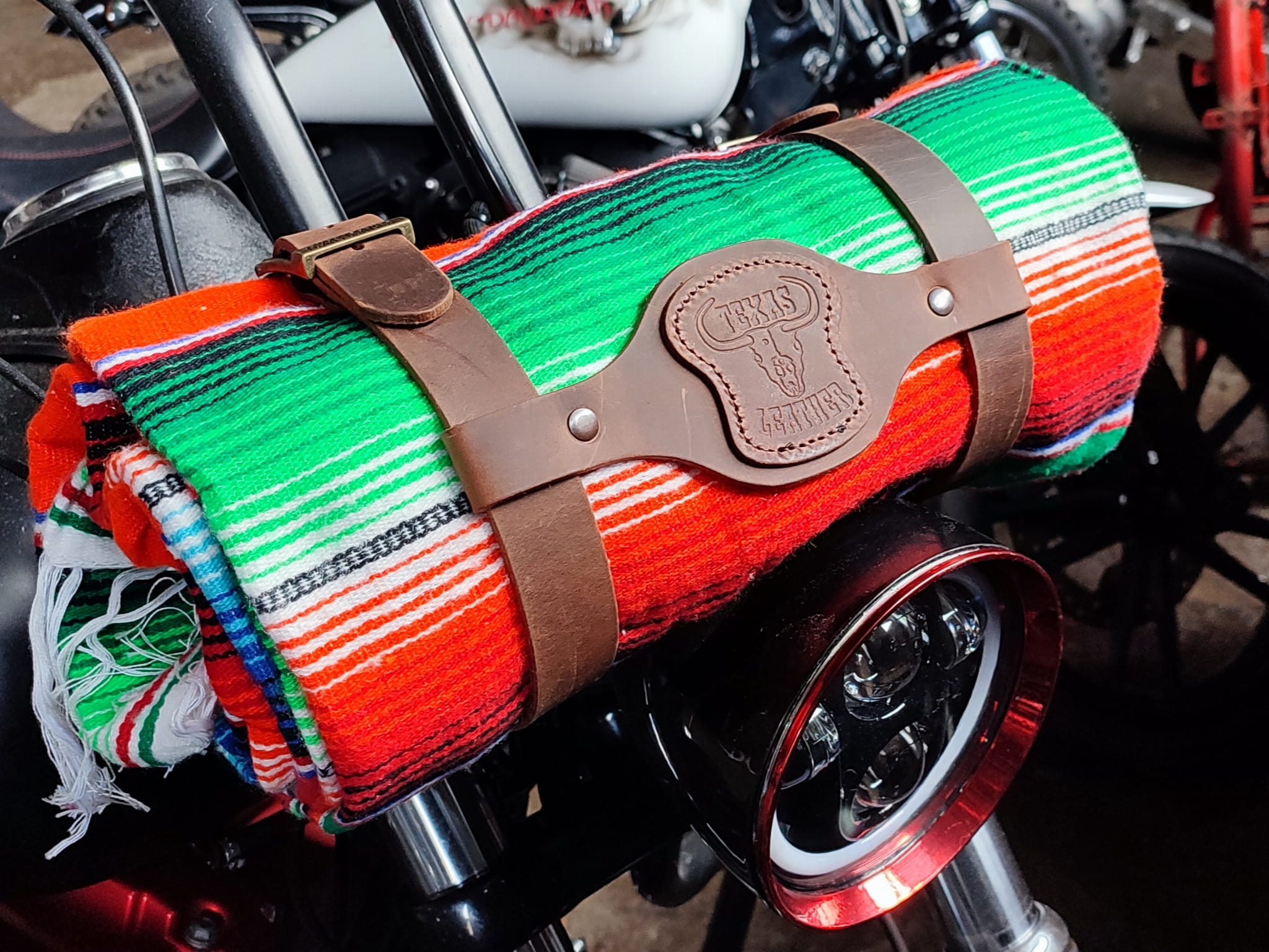 Mega stylowe koce meksykańskie, autentycznie wykonane w Meksyku. Koce możesz przymocować w dowolnym miejscu: czy to na kierownicy, nprzy siedzeniu, na błotniku czy na sissy bar.