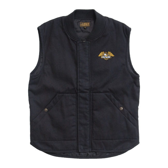 Ocieplana pikowana kamizelka płócienna, wykonana ze 100% bawełny, z podszewką z tafty 100% poliestru. Posiada naszywane kieszenie z zatrzaskami z logo, zamek błyskawiczny z klapką sztormową, dwie wewnętrzne kieszenie z klipsem na klucze, haftowaną naszywkę Condor na piersi, zatrzaski Loser Machine i haftowaną naszywkę.