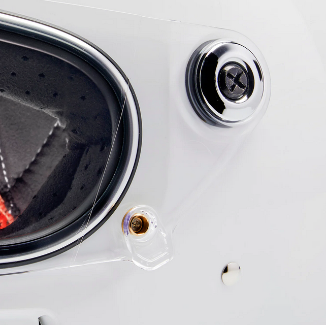 - Podkładki z anodyzowanego aluminium i śruby zawiasów wykonane są ze stali nierdzewnej. Można zamieniać je na dowolne, różne kolory wykończenia, aby spersonalizować wygląd kasku (zestawy śrub montażowych, do kupienia osobno).