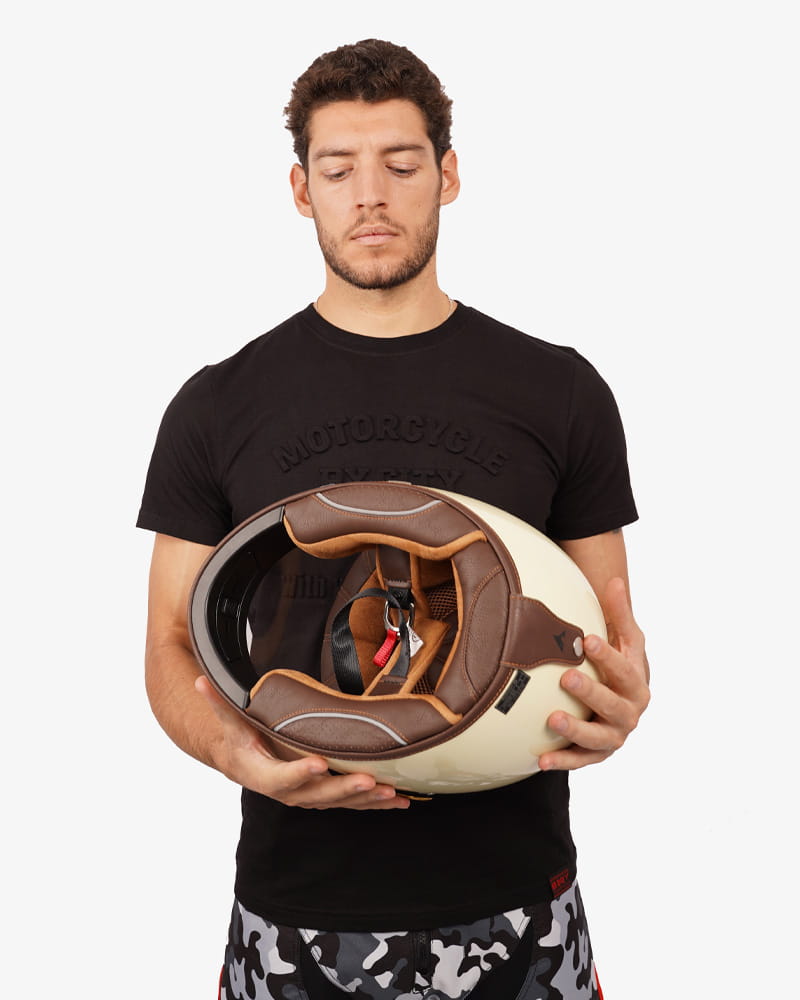 Kask By City Roadster III helmet cream kremowy integralny kask w stylu retro cafe racer