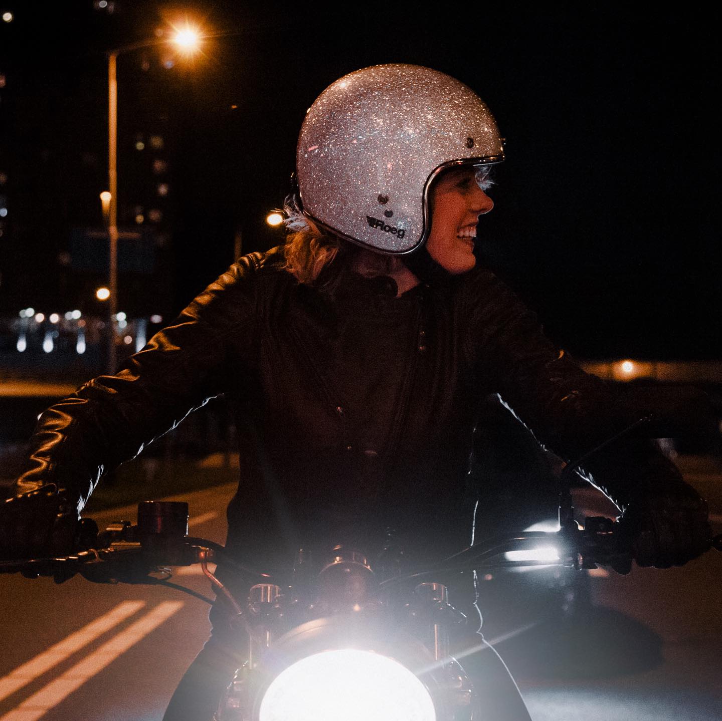 Kask Roeg Jett helmet Disco ball silver brokatowy kask otwarty z homologacją ECE 22.06