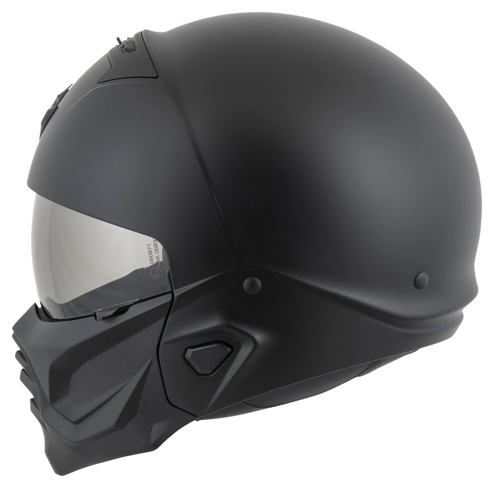 Scorpion Exo-Combat II to kask modułowy, który powraca w jeszcze bardziej agresywnej wersji, kontynuując tradycję cenioną przez motocyklistów na całym świecie.Wykonana z poliwęglanu skorupa, dostępna w dwóch rozmiarach, oferuje wysoką wytrzymałość przy zachowaniu niskiej wagi.Wysuwana blenda przeciwsłoneczna SpeedView™ z powłoką przeciwmgielną EverClear™ chroni przed promieniami słonecznymi oraz drobnymi zanieczyszczeniami. Zastosowany MicroLock z szybkim mechanizmem zwalniającym umożliwia szybkie i wygodne zapięcie kasku.O odpowiednią cyrkulację powietrza w Exo-Combat II dba aerodynamiczny system wentylacji, który sprawnie usuwa nadmiar gromadzącego się ciepła.Wyściółka KwikWick®C, o właściwościach antybakteryjnych i hipoalergicznych, skutecznie odprowadza wilgoć, utrzymując przyjemny mikroklimat wewnątrz kasku przez cały czas użytkowania.Jest także łatwa do wypięcia i przystosowana do prania, co ułatwia utrzymanie czystości.Kask modułowy Scorpion Exo-Combat II dzięki systemowi Kwikfit™ jest przyjazny osobom podróżującym na co dzień w okularach.Uzyskana homologacja ECE 22.06 potwierdza zgodność konstrukcji z europejskimi normami bezpieczeństwa.Montowana za pomocą neodymowych magnesów maska chroni przed wiatrem, kurzem i drobnymi zanieczyszczeniami, a jednocześnie podkreśla wyjątkowy, agresywny wygląd modelu.