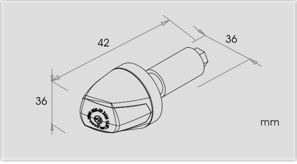 Kierunkowskaz z czarną metalową obudową i przyciemnianym szkłem. Do kierownic stalowych i aluminiowych o średnicy wewnętrznej od 13 mm do 22 mm.