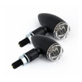 Ledowe kierunkowskazy Micro-Bullet, czarne, gładkie z przeźroczystym szkłem.