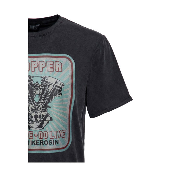 King Kerosin Chopper t-shirt oilwashed black szara koszulka motocyklowa z silnikiem chopper style harley