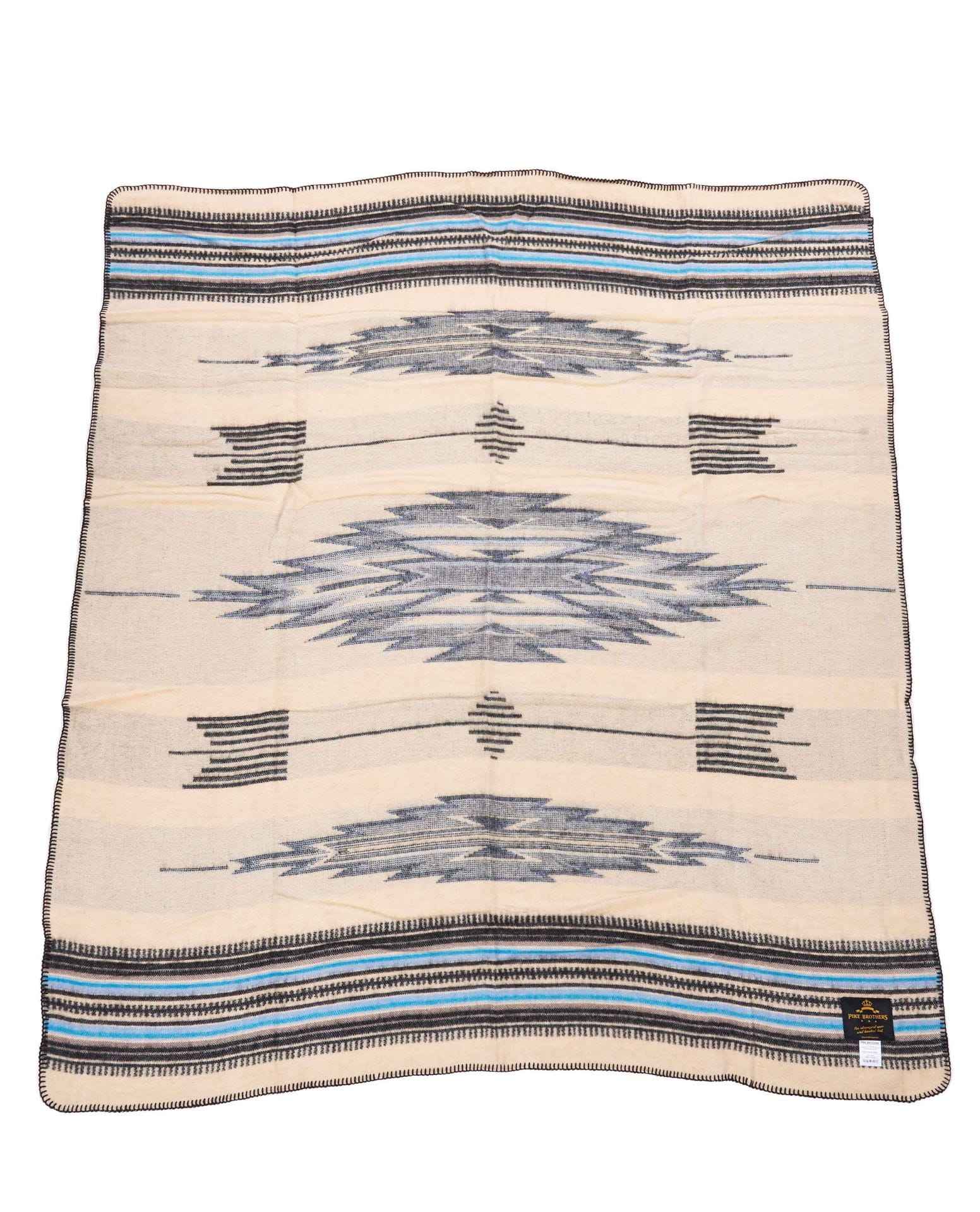 Koc Pike Brothers 1969 Chimayo blanket blue wełniany koc motocyklowy ze skórzanymi mocowaniami chopper harley klasyczne motocykle beżowo-niebieski koc