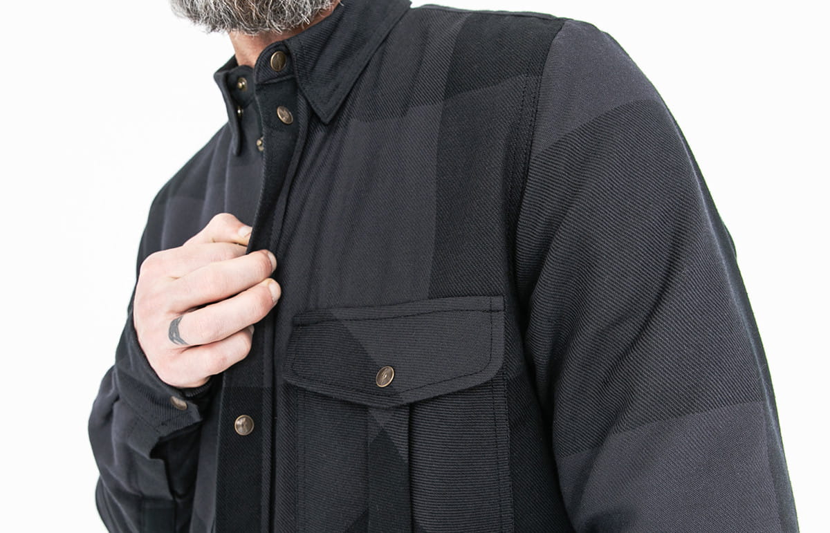 Koszula motocyklowa John Doe Motoshirt Grey Big Block AAA klasyczna koszula motocyklowa z ochraniaczami