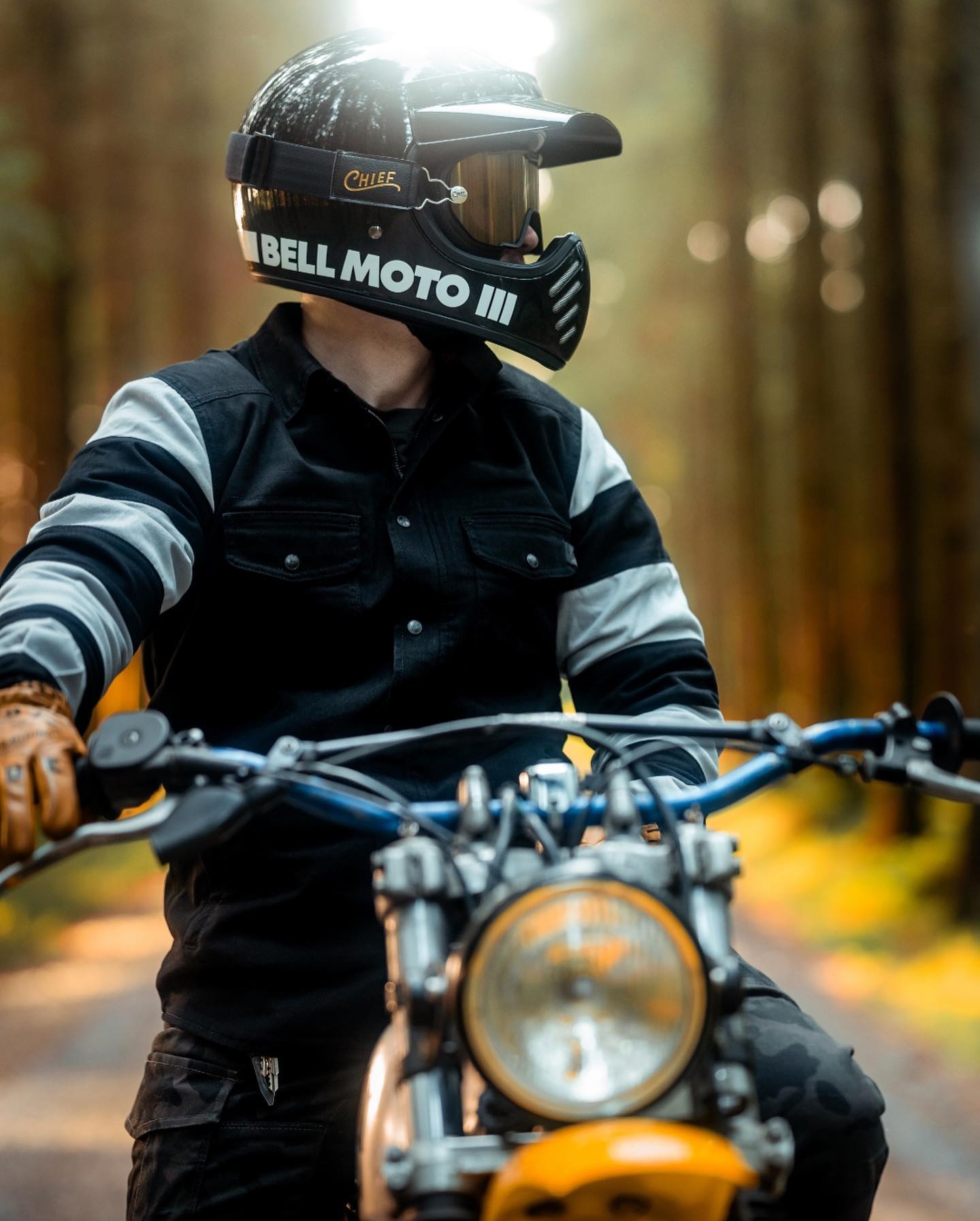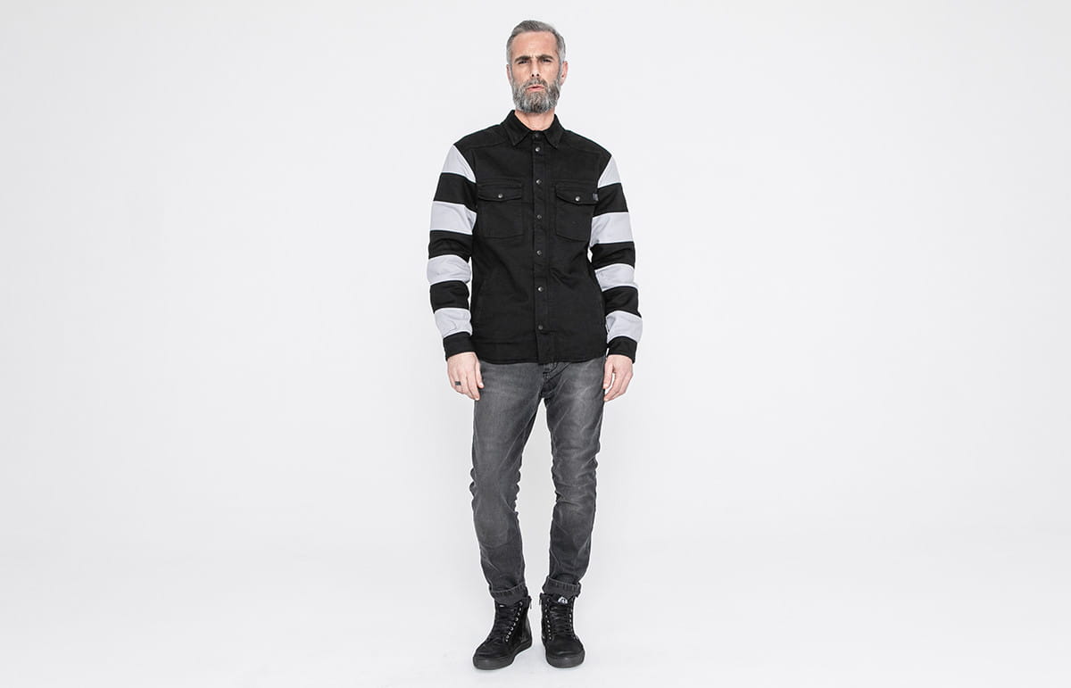 Koszula motocyklowa John Doe Motoshirt Prison AAA klasyczna koszula motocyklowa w paski biało-czarne z ochraniaczami