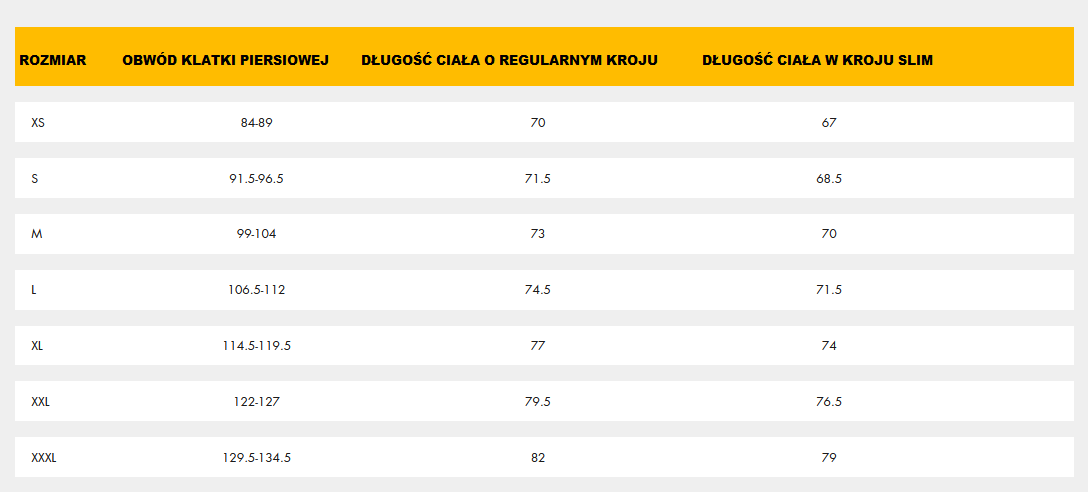 Tabela rozmiarów znajduje się w galerii.