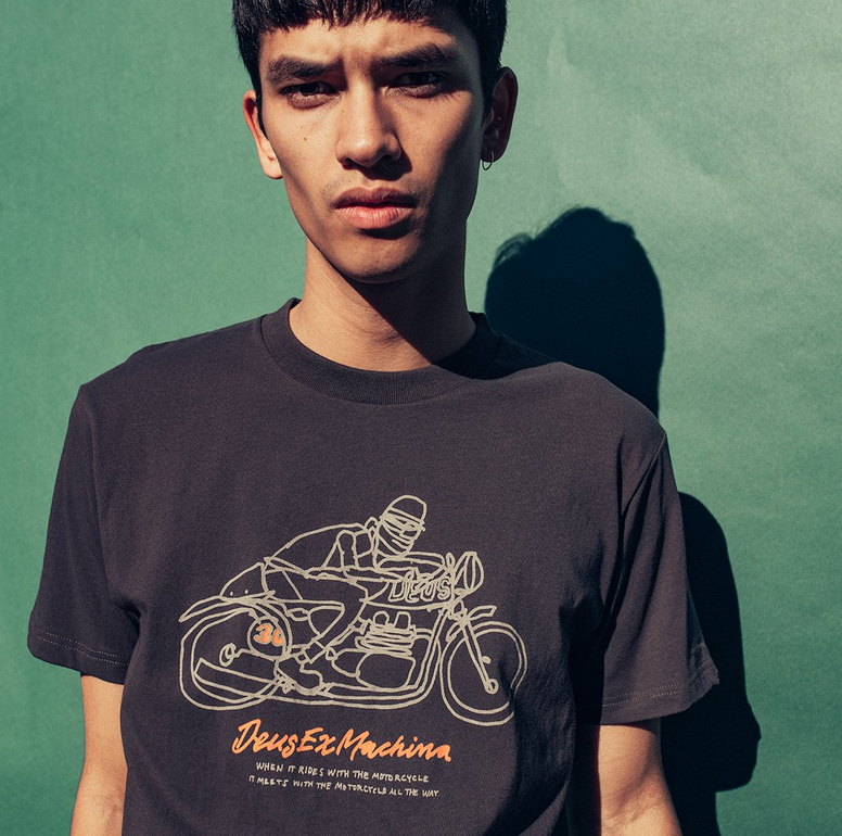 Koszulka o regularnym kroju, pięciokolorowy nadruk z przodu oryginalnej grafiki Deus, jednokolorowy nadruk z tyłu, wykonana z bawełny o gramaturze 160 g/m².