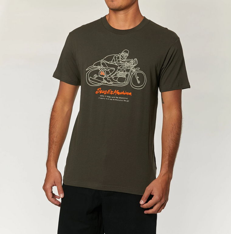 Rewelacyjna koszulka dla fana dwóch kółek. Koszulka przedstawia samotnego jeźdźca w kultowym stylu ilustracji Deus.