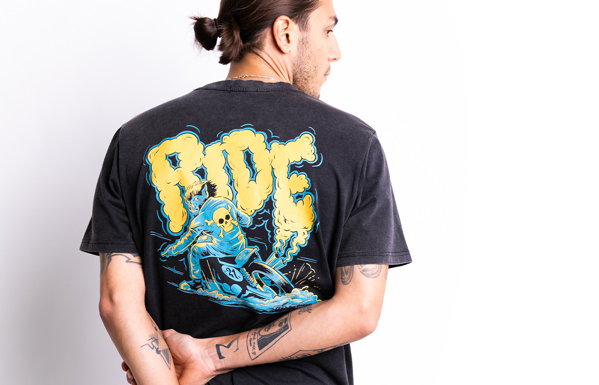 Komfortowy krój, klasyczny fason koszulki z nietuzinkowa grafiką. Idealna zarówno dla motocyklistek i motocyklistów. Świetnie nadaje się na prezent dla fana dwóch kółek. Stanowi idealne uzupełnienie ubioru motocyklowego.