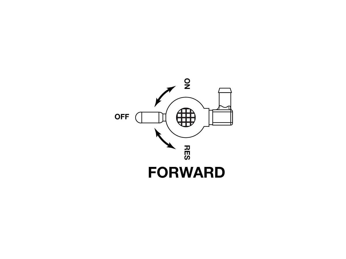 - Duża odległość między pozycjami „ON” i „RESERVE” (180 stopni, od zatrzymania do zatrzymania) dla bezpiecznej obsługi