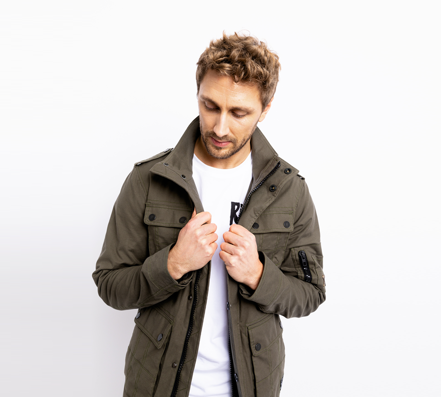 On the outside of the jacket are four pockets with flat YKK press studs; the lower outer double pockets are zippered on the side.