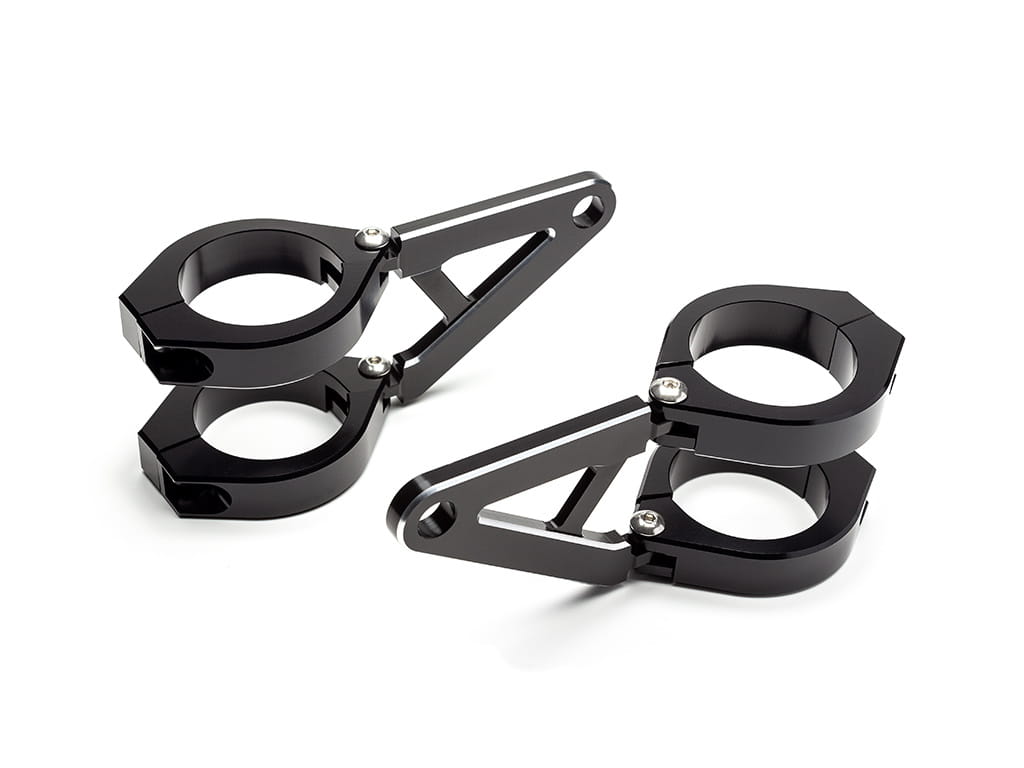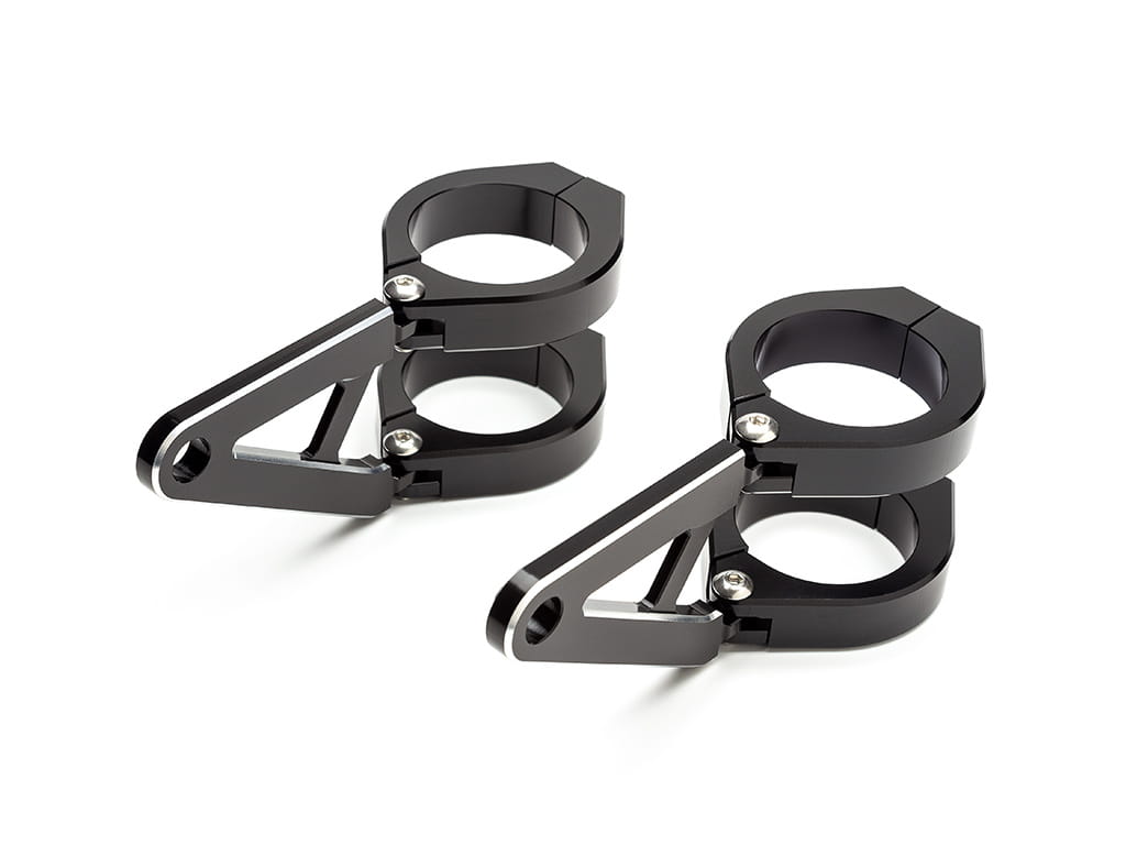 Uniwersalne mocowania reflektora. Dostępne warianty na lagi o średnicy od 32mm do 59mm frezowane z litego aluminium anodowanego na czarno.