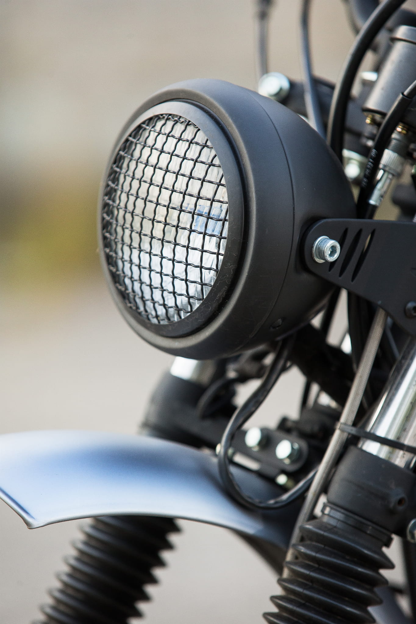 Reflektor Scrambler, idealnie swoim wyglądem i charakterem pasuje do zamontowania w motocyklach typu: scrambler, tracker lub innych projektów customowych.