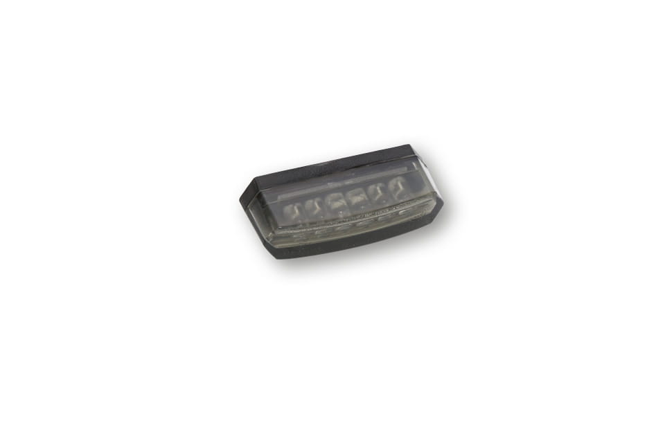 Black ABS base plate - Smoke lens - ECE approved lens - Dimensions approx. 50mm wide x 14mm high x 20mm deep. Note: Without license plate illumination