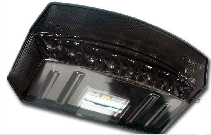 Światło tylne, światło stop - idealne do motocykli typu: cafe racer, scrambler i innych projektów customowych. Efektowna lampa tylna LED w obudowie z tworzywa sztucznego. Pełni jednocześnie funkcję podświetlenia tablicy rejestracyjnej. Posiada funkcję stopu.