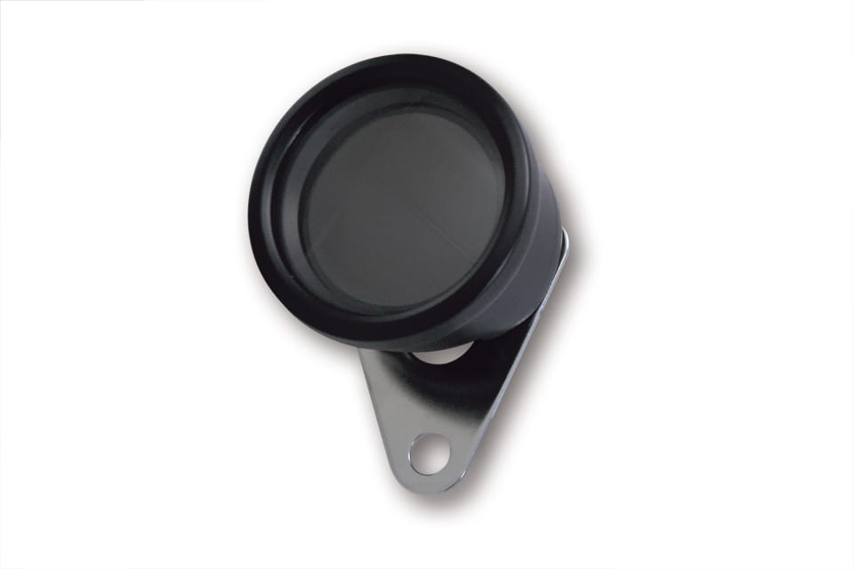 60mm diameter black stainless housing with V-bracket and ECE approved. With white LED background lighting on a black base with two calibration buttons on the bottom. Includes up to 399kmh / 250mph speedo, 99.999 km / miles odometer and two 0-9999.9 km / miles trip meters and a full scale adjustable 0-20.000 RPM bar graph. Can be connected to the bike's digital output signal. If there is no digital output available, it is recommend to order sensor 900404 separately.