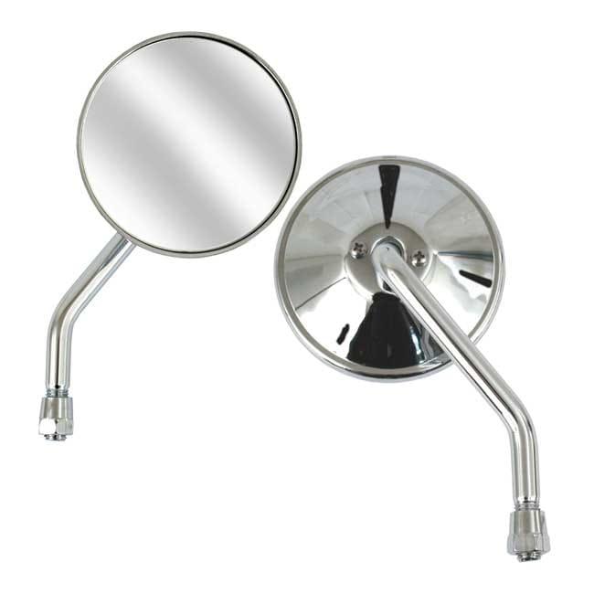 Left side use only. 10mm threaded. Mirror head diameter approx. 3-3/8" (8.5cm). Stem length 4" (10cm).