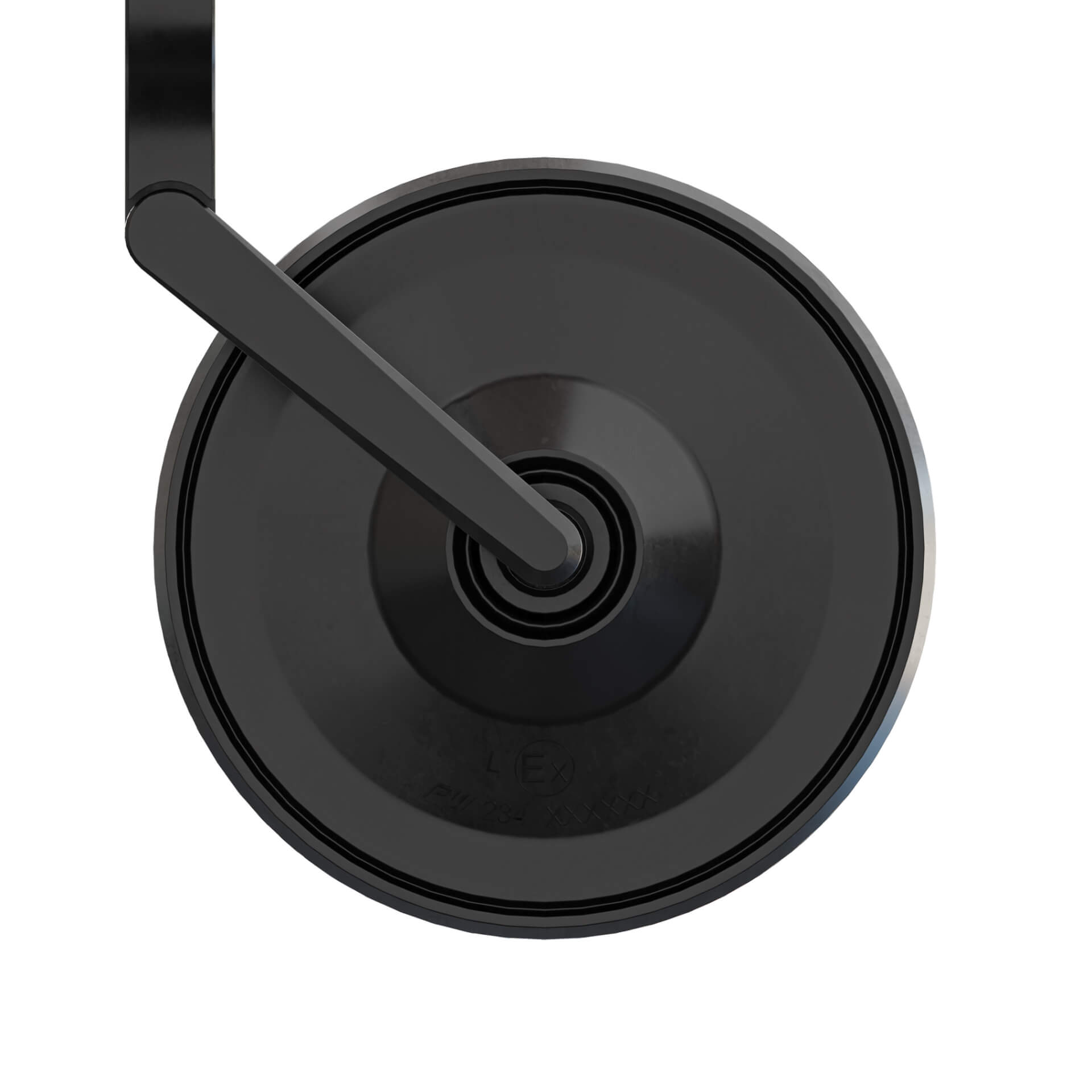 Głowica lustra wykonana z wysokiej jakości tworzywa sztucznego ma elegancki wygląd dzięki matowej powierzchni, która optycznie idealnie komponuje się z uchwytem lusterka z piaskowanego i anodowanego na czarno aluminium.
