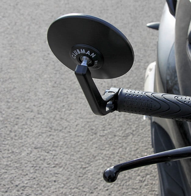 Now the classic, elegant CLUBMAN® mirror is also available for mounting on the handlebar end. It is clamped onto the steering tube and fits 22 mm and 1 inch handlebars and can be mounted on the right and left.