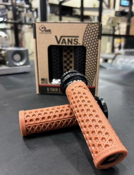 Man, you need Vans®! Two Southern California originals have teamed up to create a modern-day classic design for your V-Twin Motorcycle. Designed in-house at ODI, the VANS V-Twin Lock-On Grip System feature the classic Vans® waffle sole patterns built to deliver you an amazing riding experience. Built into a medium diameter grip that provides amazing palm traction while delivering extra vibration dampening. Each pair of grips are constructed in-house at ODI using proprietary grip compounds for a consistent feel that provides exceptional control in all conditions. Proudly made in the USA by ODI.
