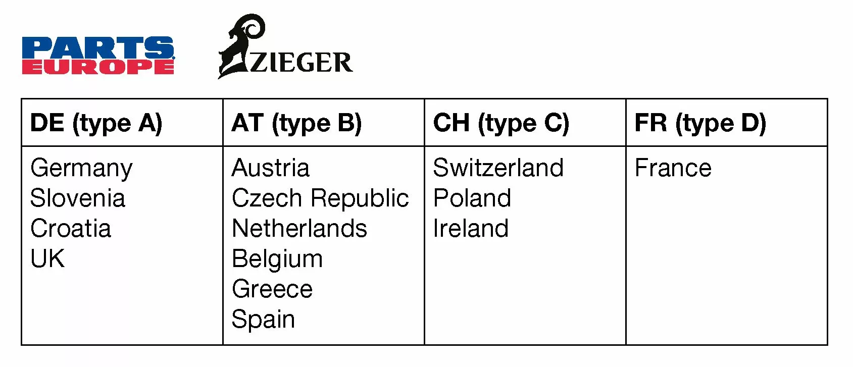 Typ D pasuje do odpowiednich rozmiarów tablic rejestracyjnych: Francji