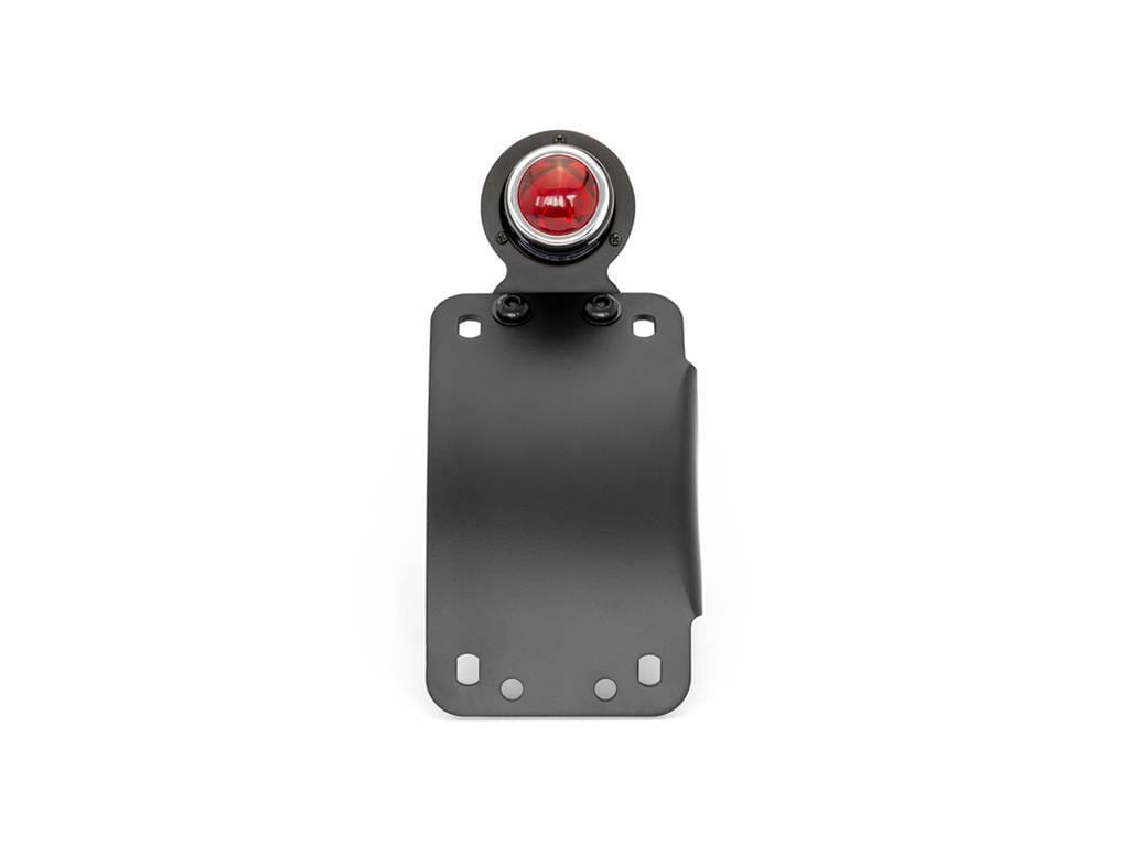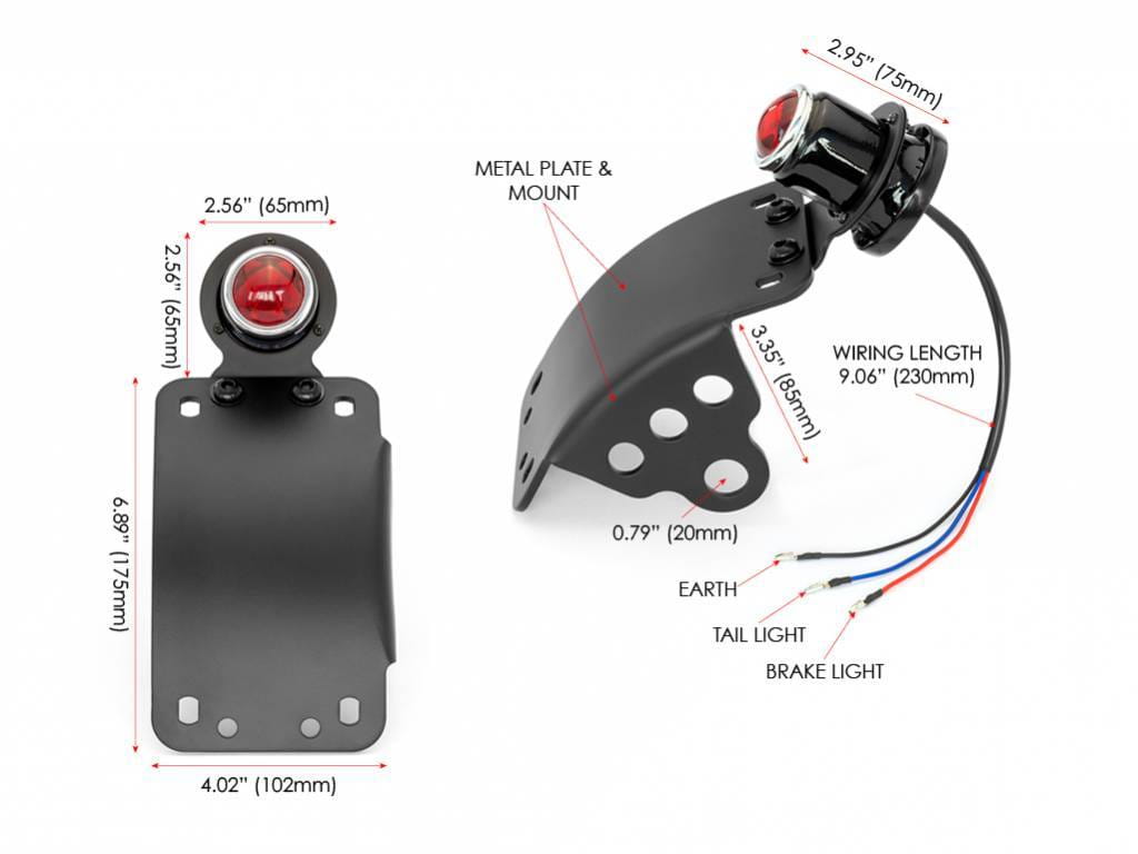 Good quality & solid side mount classic tail light with license plate bracket. The bracket mounts directly to your bikes rear axle and can be mounted to the left or right side of the bike by simply flipping the plate over and undoing the nuts of the light and fitting it to the opposite side or the plate.
