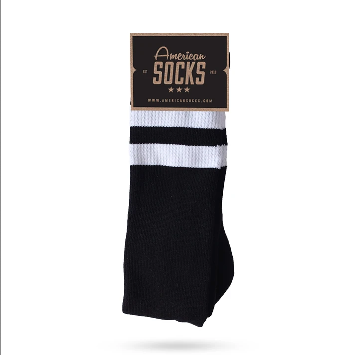 Motocyklowe skarpetki American Socks American Socks Knee High Back In Black triple white striped skarpety skarpetki motocyklowe czarne wysokie z białymi paskami bobber chopper harley scrambler cafe racer