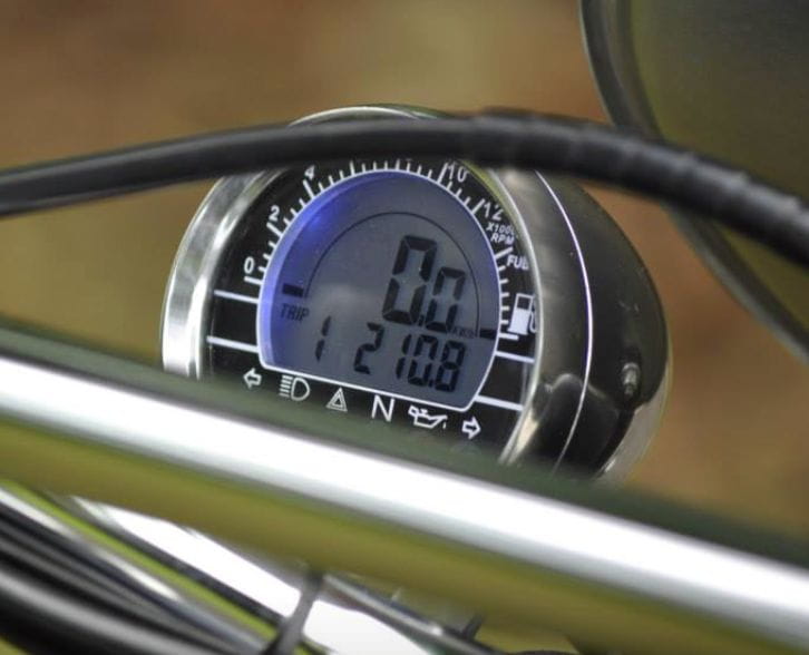 Ma możliwość przechowywania licznika podróży, a także licznika całkowitego. Jest w 100% wodoodporny, odporny na wstrząsy do 8G (idealny do tych starych motocykli) i ma nawet zegar!