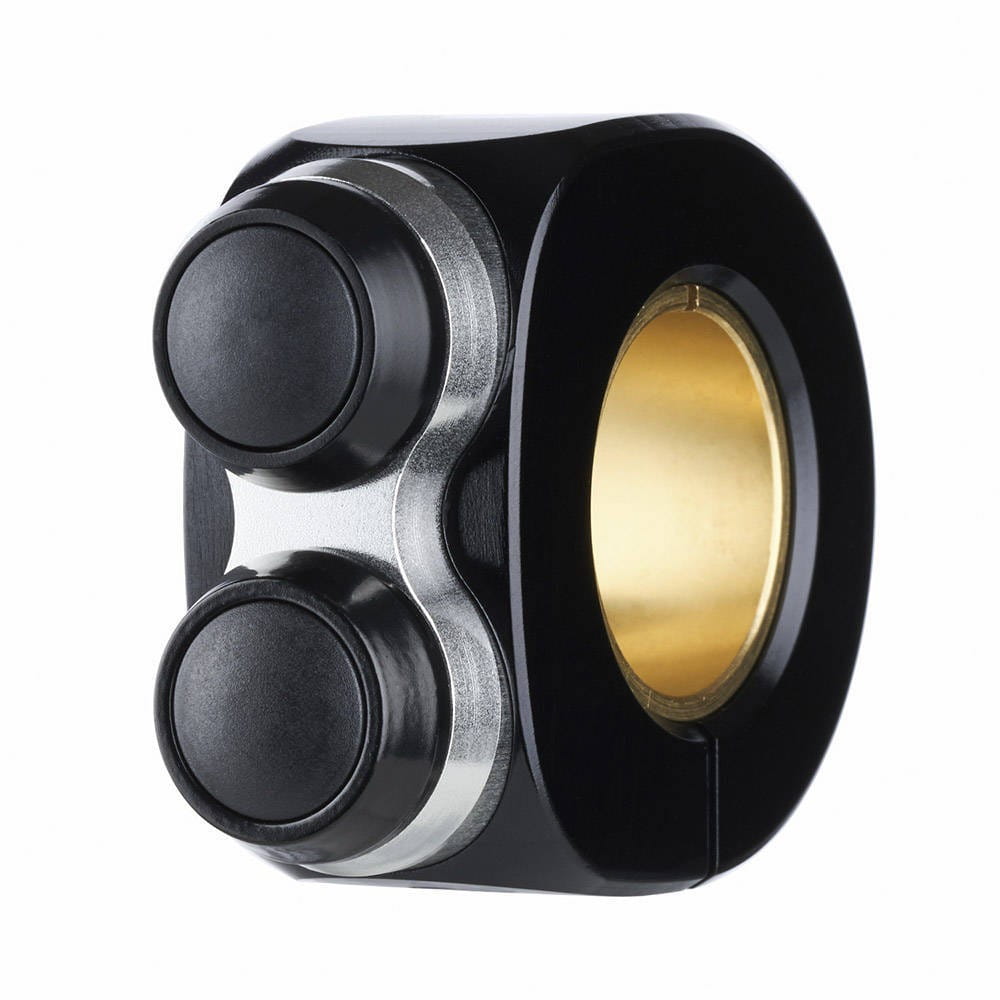 Dwa przyciski na jednostkę są zawsze czarne. Ukryta śruba mocująca M4 wykonana ze stali nierdzewnej bezpiecznie i stabilnie mocuje obudowę do każdej kierownicy.