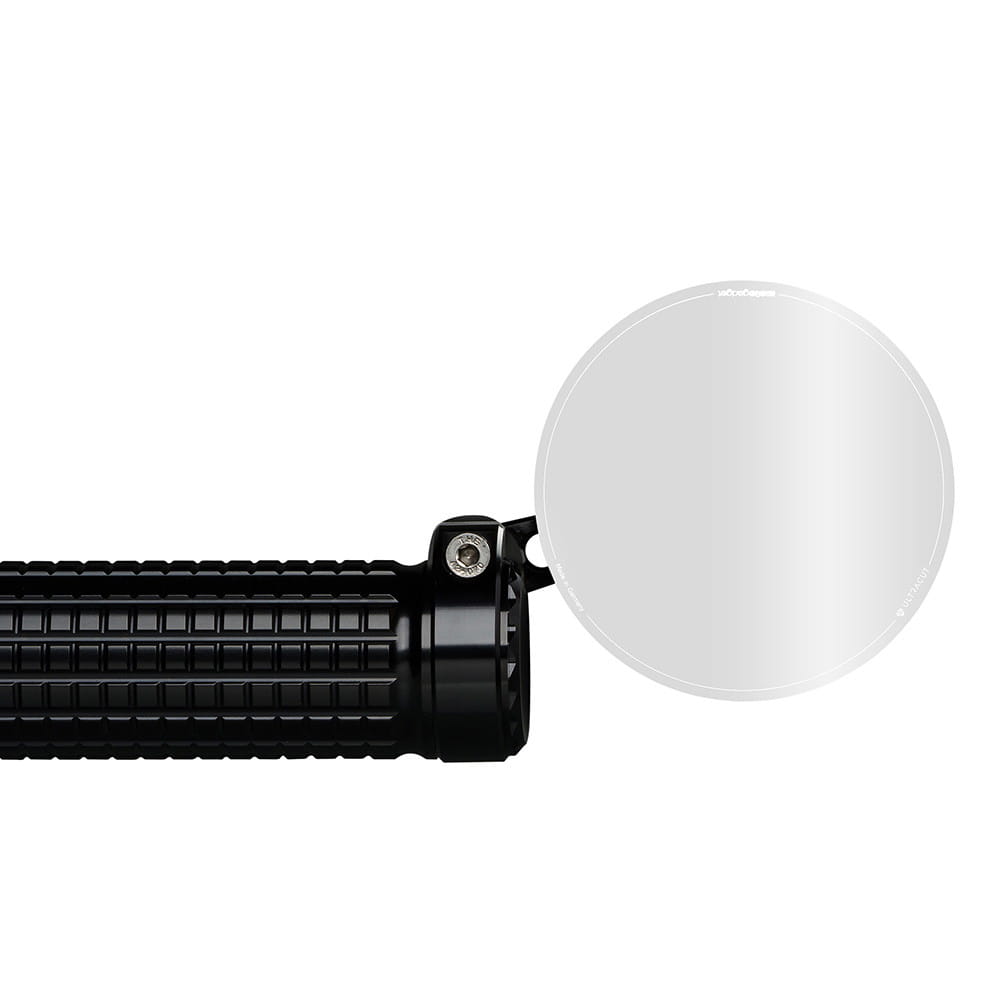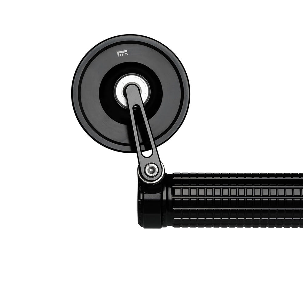 The mirror can be mounted above or below the handlebars and is suitable for the right and left side. It is mounted directly on the handlebar end (22 mm and 1 inch) or, if the grips and fittings cannot be moved, using a mo.view bar adapter.