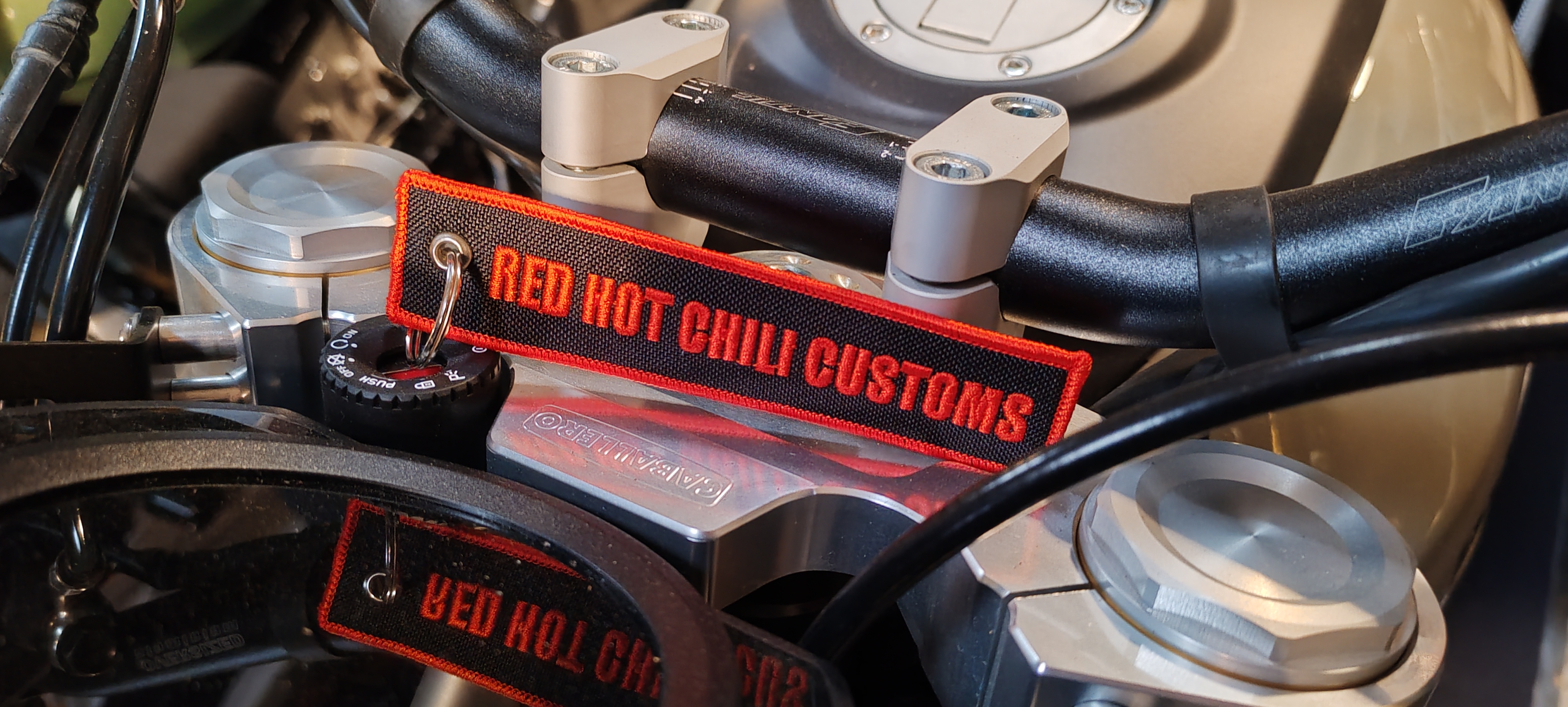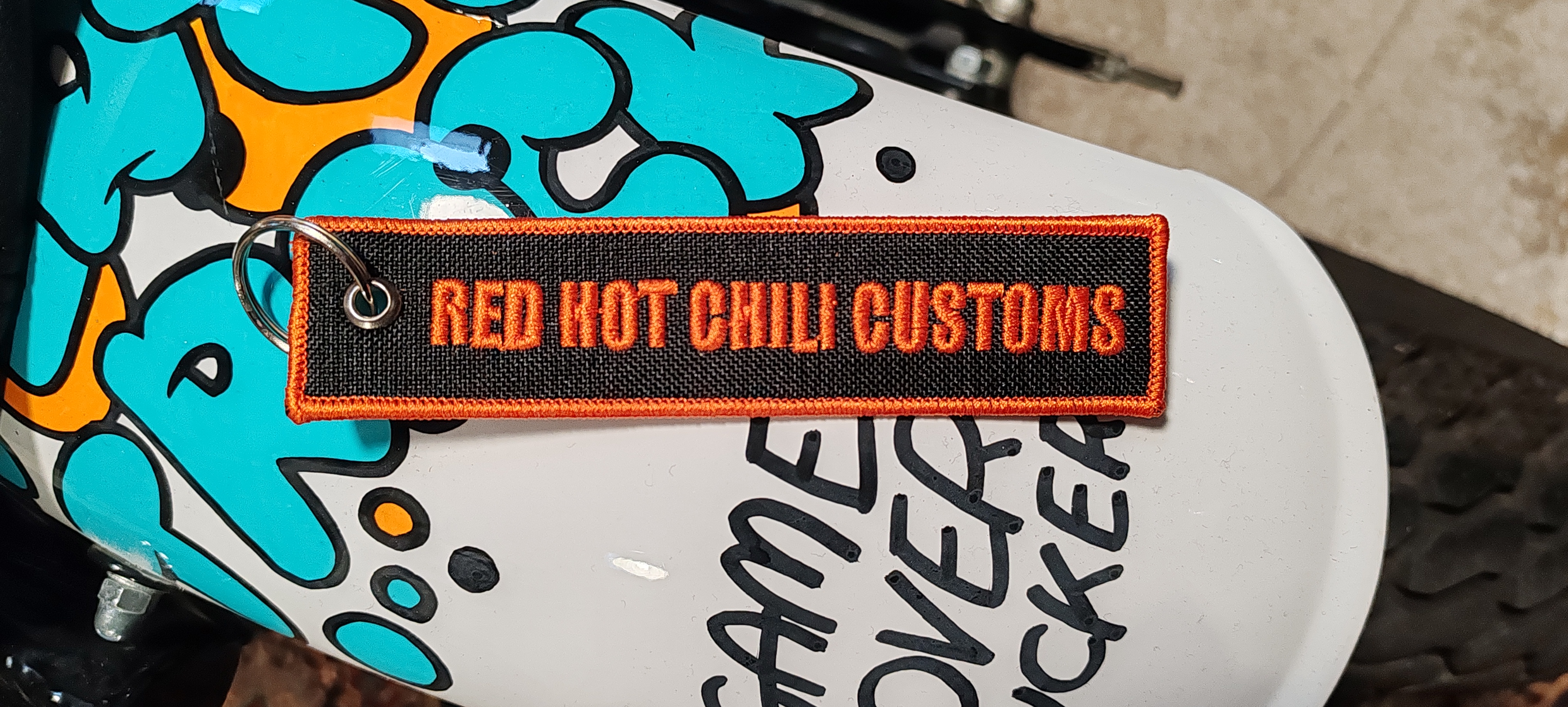 Nasz firmowy brelok motocyklowy miękki Red Hot Chili Customs " Hard work, good ride"