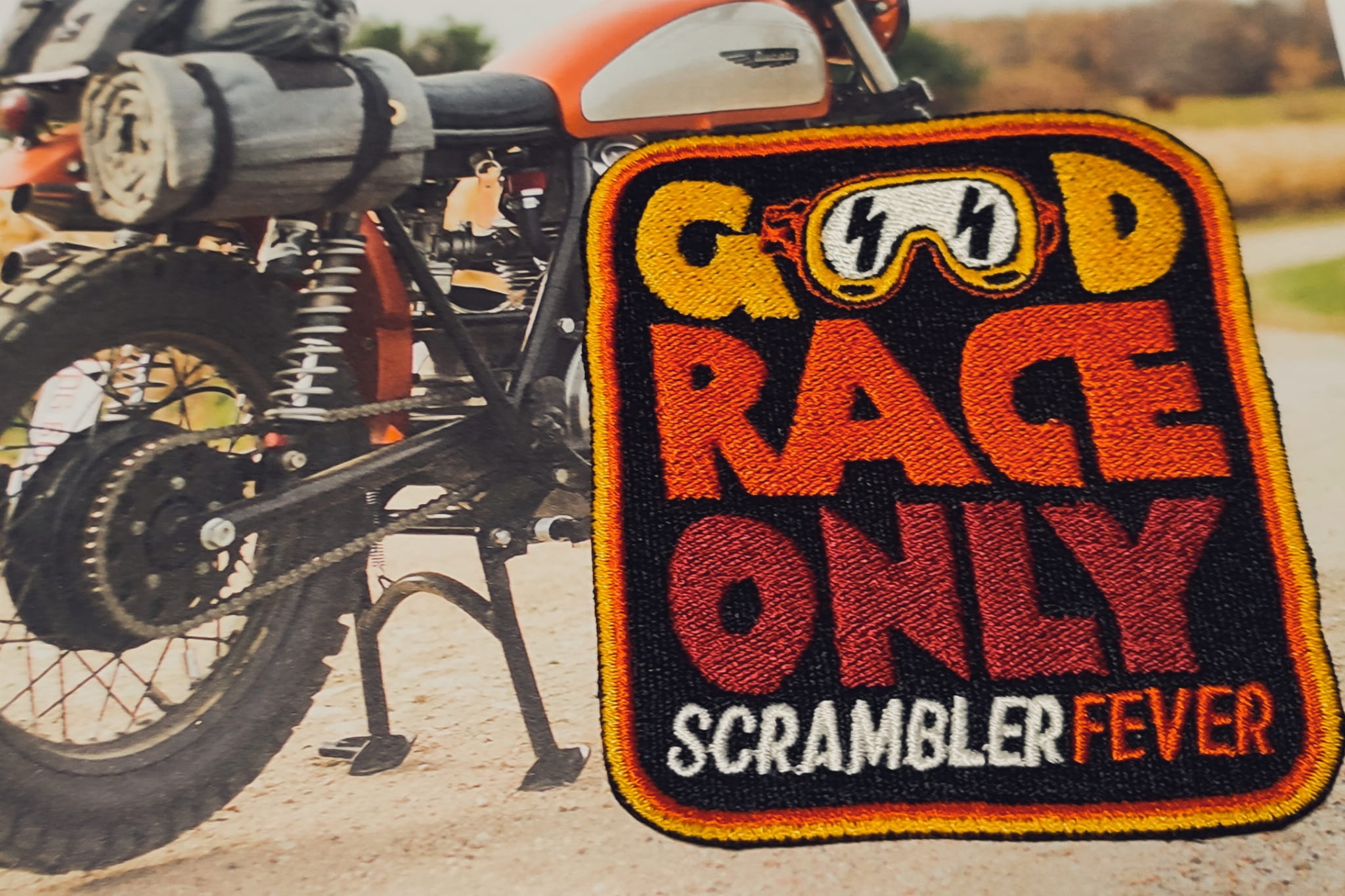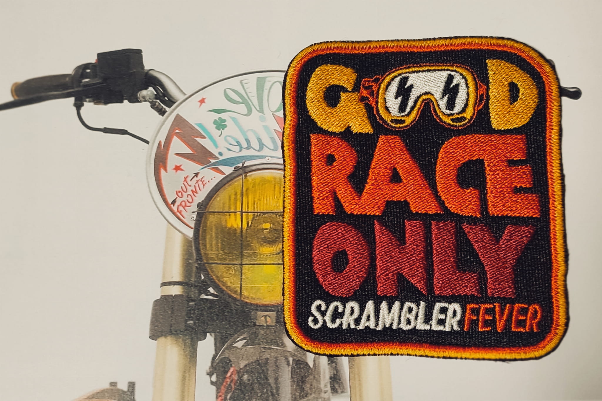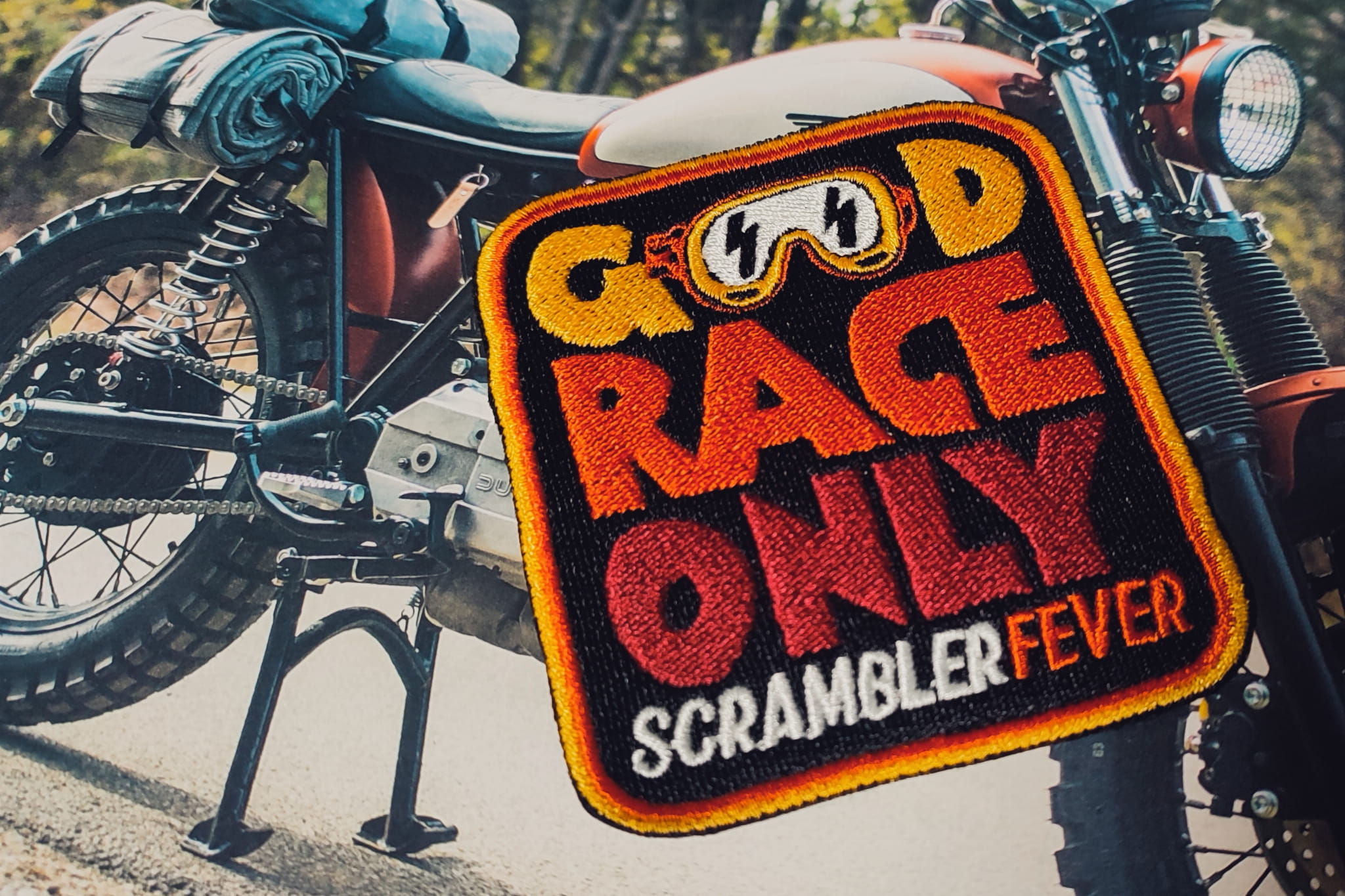 Naszywka motocyklowa Scrambler Good race only scrambler fever!