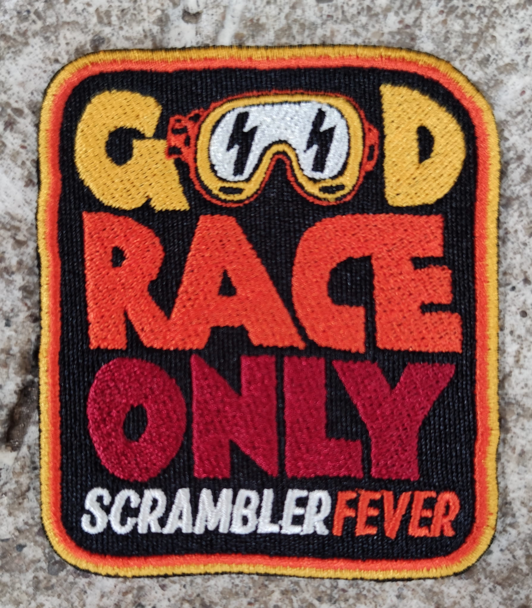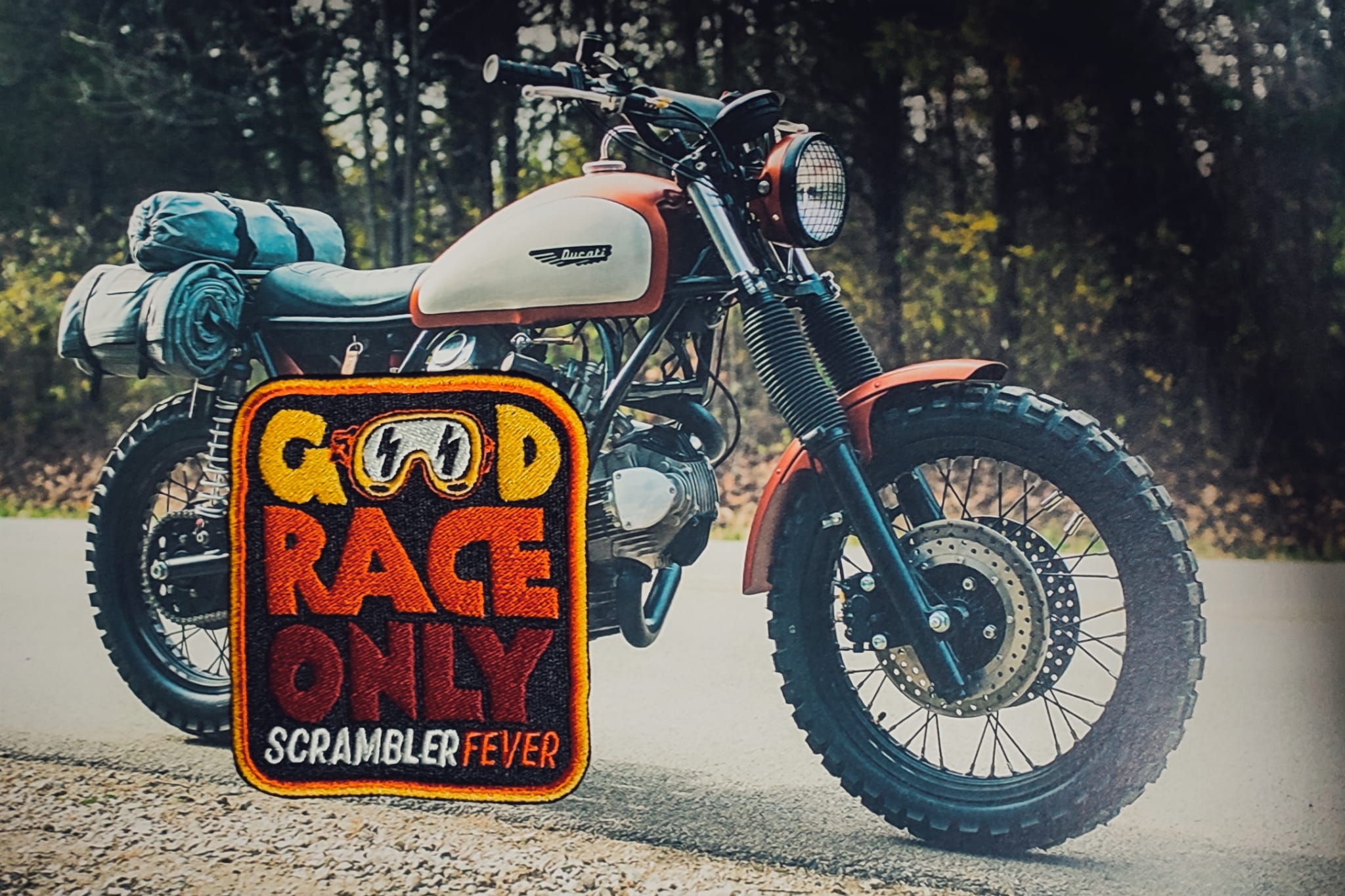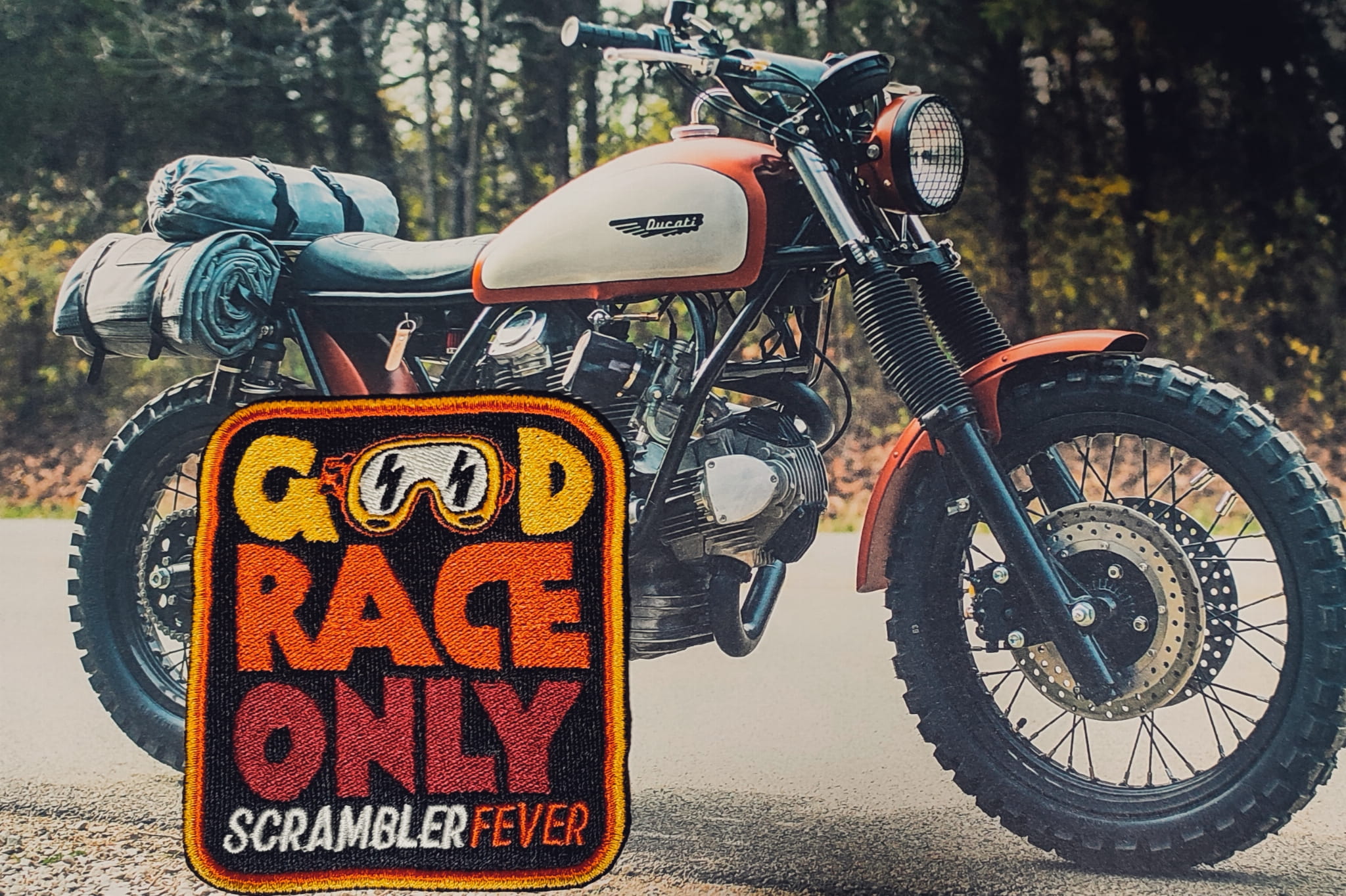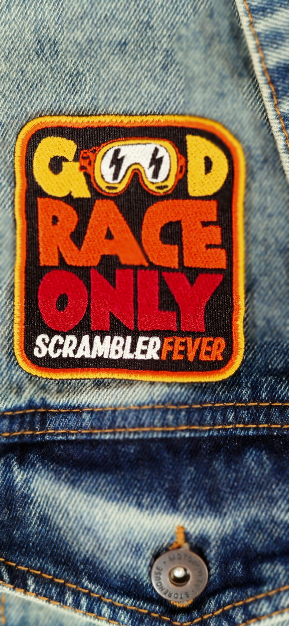 Naszywka motocyklowa Scrambler Good race only scrambler fever!