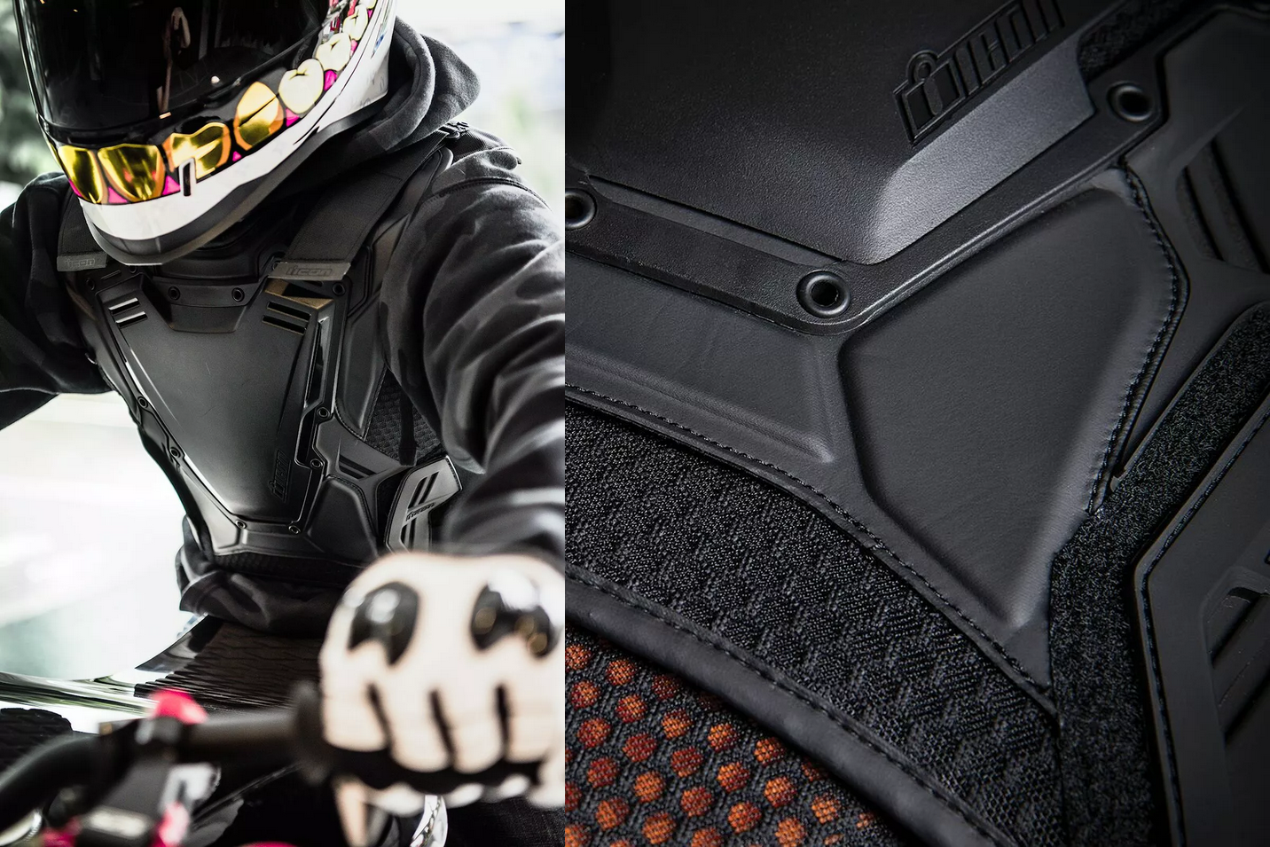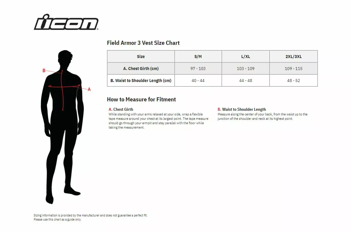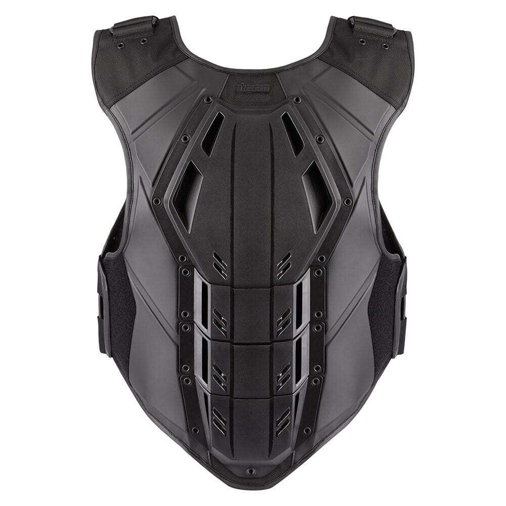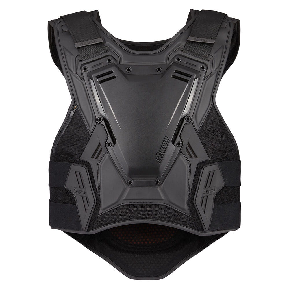 When we first designed the Stryker™ vest, we didn't know it would become the de facto uniform of sportbike riders worldwide. We were designing gear for the most at-risk riders, you and us. After years in the ICON lineup, the time had come to update, so we went back to the drawing board and reworked a classic to bring you the rider developed Field Armor Vest™. Vented bio-foam and air mesh chassis are paired to an articulating injection molded shell with airflow channels, keeping you cool and comfortable when it's hot and not. The D3O® chest and back impact protectors provide industry-leading impact absorption. Elastic and hook & loop straps help ensure a snug fit over multiple body sizes, while the low-profile form factor fits easily under most jackets. We're paying homage to our past by looking to our future. The future is ICON.