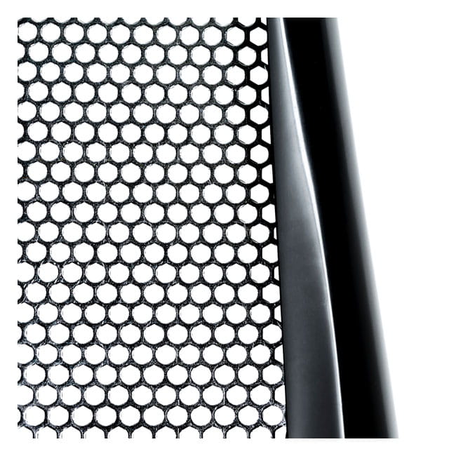 - Wykonana z ręcznie układanego, niepomalowanego, pokrytego żelem włókna szklanego, które jest bardzo sztywne, mocne, proste i lekkie, z podłożem z czarnej siatki drucianej o strukturze plastra miodu, malowanej proszkowo.