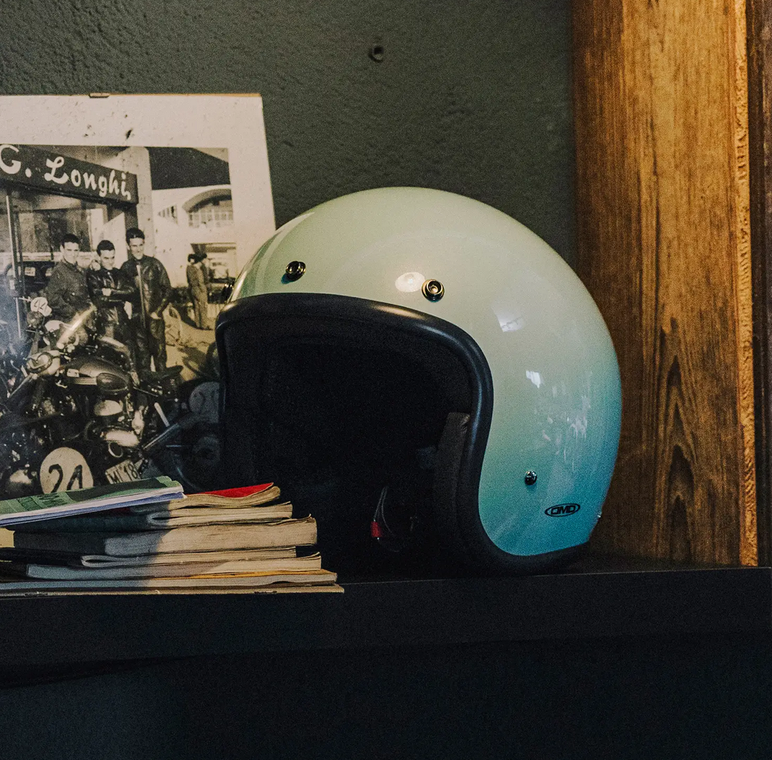 Kask jet Retro Lattementa cechuje piękny odcień pochodzący z połączenia jasnoniebieskiego i zieleni. Idealny kolor dla tych, którzy szukają czystego, ale jasnego i zabawnego koloru. Jeśli jeździsz motocyklem Custom, Vintage, Cafe Racer, Harley Davidson, Triumph, BMW, Honda, Guzzi, Indian, Vespa lub skuterem, nos kask jet Retro Lattementa.