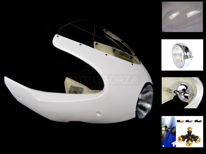 Owiewki do indywidualnej aranżacji na motocyklu, wykonanie uchwytów we własnym zakresie. Bazą jest żywica GFK oraz maty najwyższej jakości. Zewnętrzna warstwa żelkotu jest odporna na promieniowanie UV i może być dowolnie obrabiana do lakierowania. W miejscach narażonych na naprężenia dodatkowo wzmocnione warstwą kewlaru.