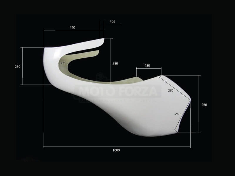 Owiewki do indywidualnej aranżacji na motocyklu, wykonanie uchwytów we własnym zakresie. Bazą jest żywica GFK oraz maty najwyższej jakości. Zewnętrzna warstwa żelkotu jest odporna na promieniowanie UV i może być dowolnie obrabiana do lakierowania. W miejscach narażonych na naprężenia dodatkowo wzmocnione warstwą kewlaru.