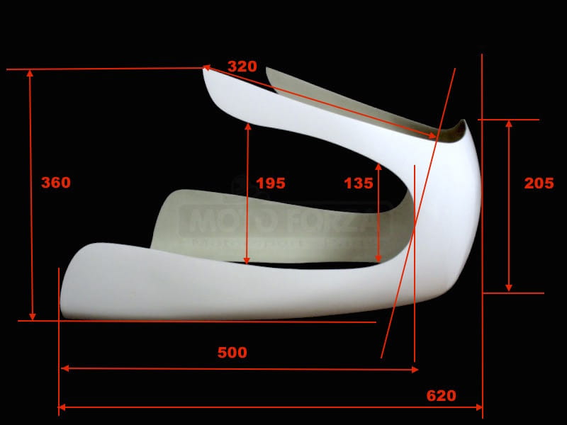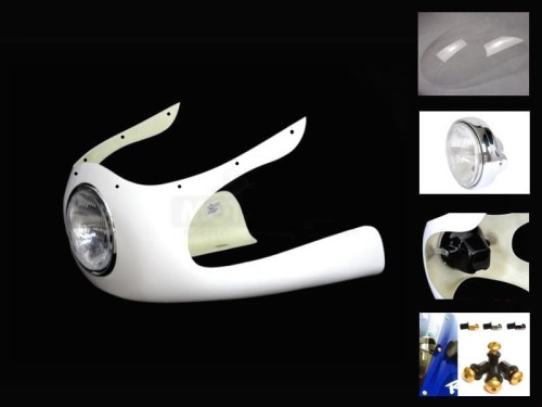 Owiewki do indywidualnej aranżacji na motocyklu, wykonanie uchwytów we własnym zakresie. Bazą jest żywica GFK oraz maty najwyższej jakości. Zewnętrzna warstwa żelkotu jest odporna na promieniowanie UV i może być dowolnie obrabiana do lakierowania. W miejscach narażonych na naprężenia dodatkowo wzmocnione warstwą kewlaru.